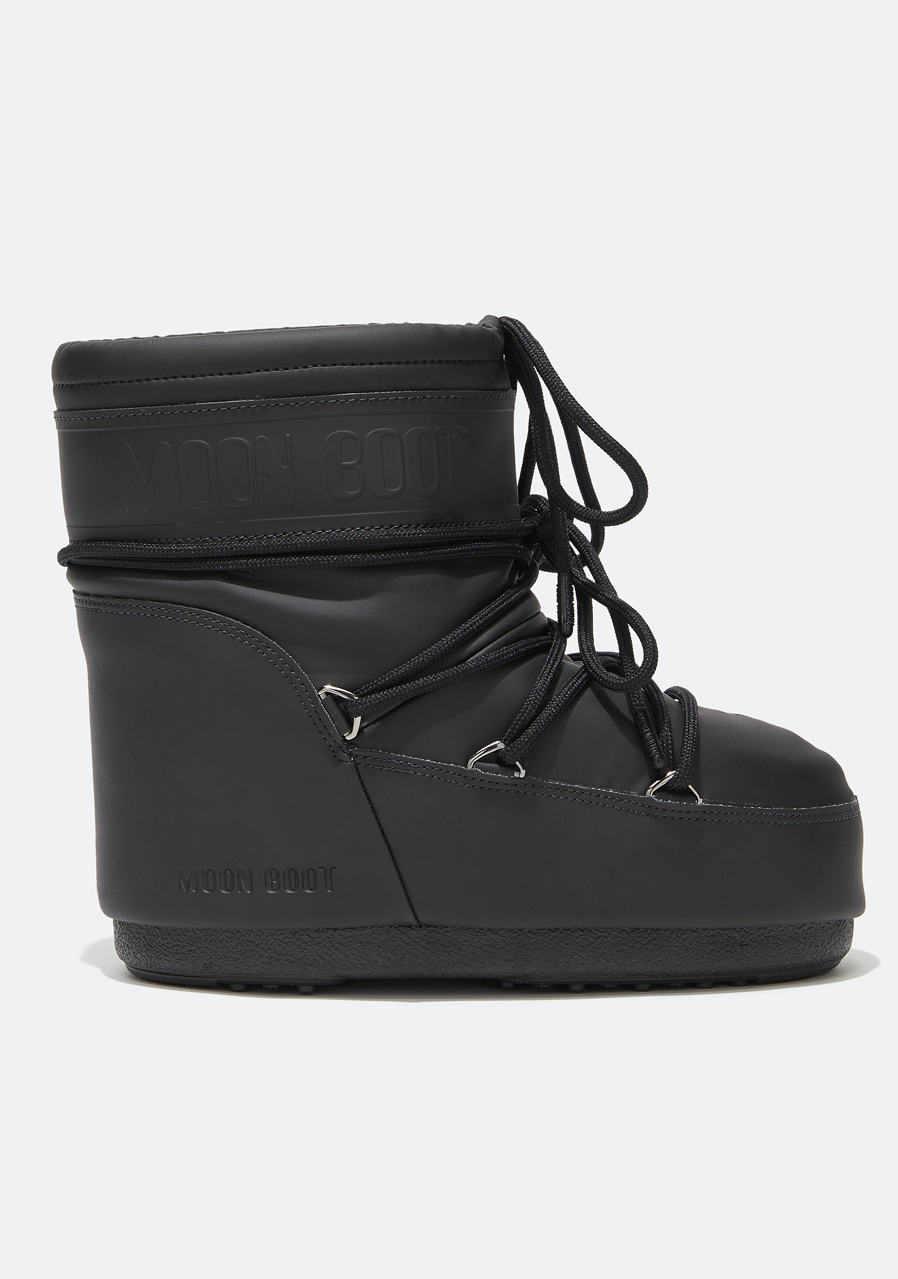 Dámske snehule Moon Boot Icon Low Rubber v čiernom prevedení N001 ponúkajú ikonický dizajn v nižšom strihu as moderným pogumovaným zvrškom. Tento detail im dodáva elegantný lesk a zároveň zvyšuje ich odolnosť voči zimným podmienkam. Mäkká podšívka zaistí pohodlie a hrejivý komfort, vodoodpudivý povrch chráni pred vlhkosťou a pevná gumová podošva poskytuje stabilitu na snehu aj ľade. Ideálna voľba pre ženy, ktoré chcú spojiť praktickosť, štýl a originálny vzhľad v jednej topánke.