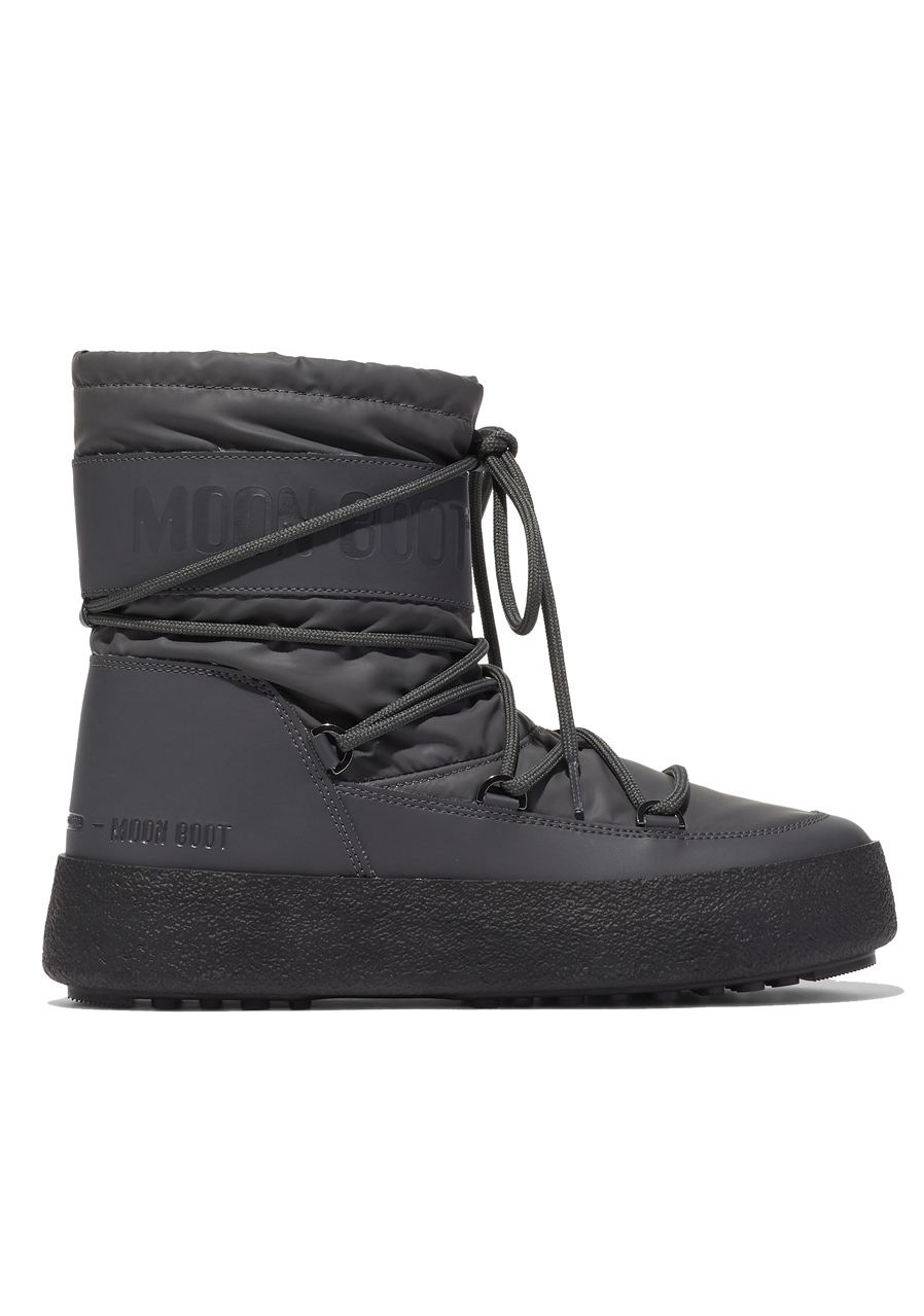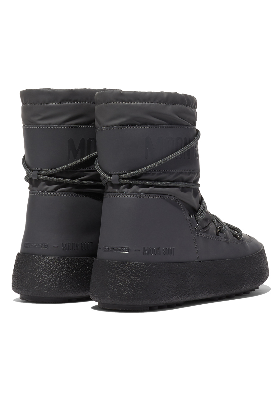 Pánske zimné topánky Moon Boot Mtrack Tube Rubber v tmavo šedom prevedení 001 Dark Grey sú ideálnou kombináciou štýlu a funkčnosti. Odolný gumový zvršok s vodeodpudivou úpravou spoľahlivo chráni pred snehom i vlhkosťou, zatiaľ čo hrejivá podšívka so zateplením udrží nohy v teple aj počas mrazivých dní. Vyšší členkový strih poskytuje stabilitu a ochranu proti prenikaniu snehu, zatiaľ čo gumová podošva s protišmykovým vzorom zaistí istý krok na ľade aj zasneženom teréne. Topánky sú skvelou voľbou ako do mesta, tak na zimné víkendové výpravy.