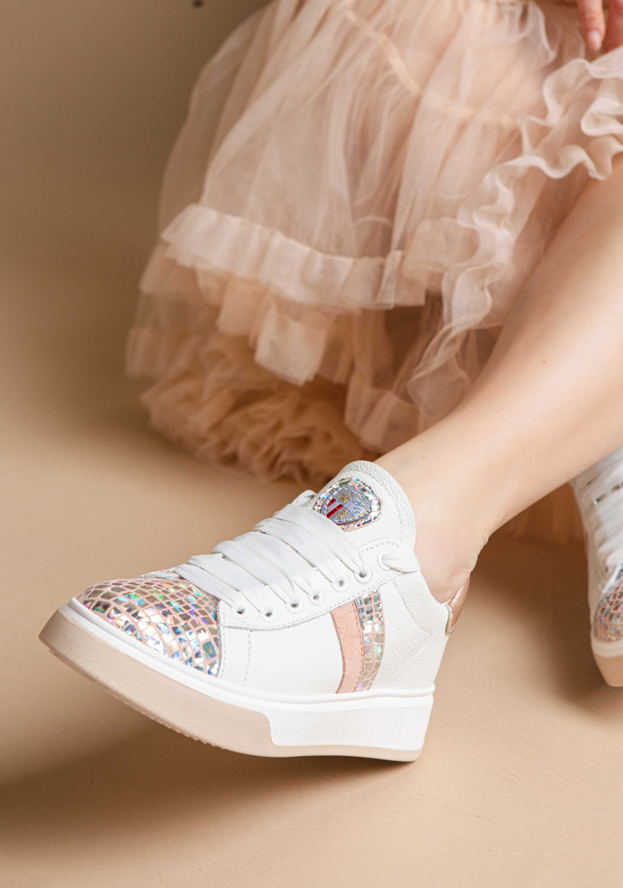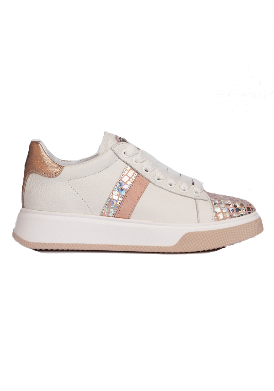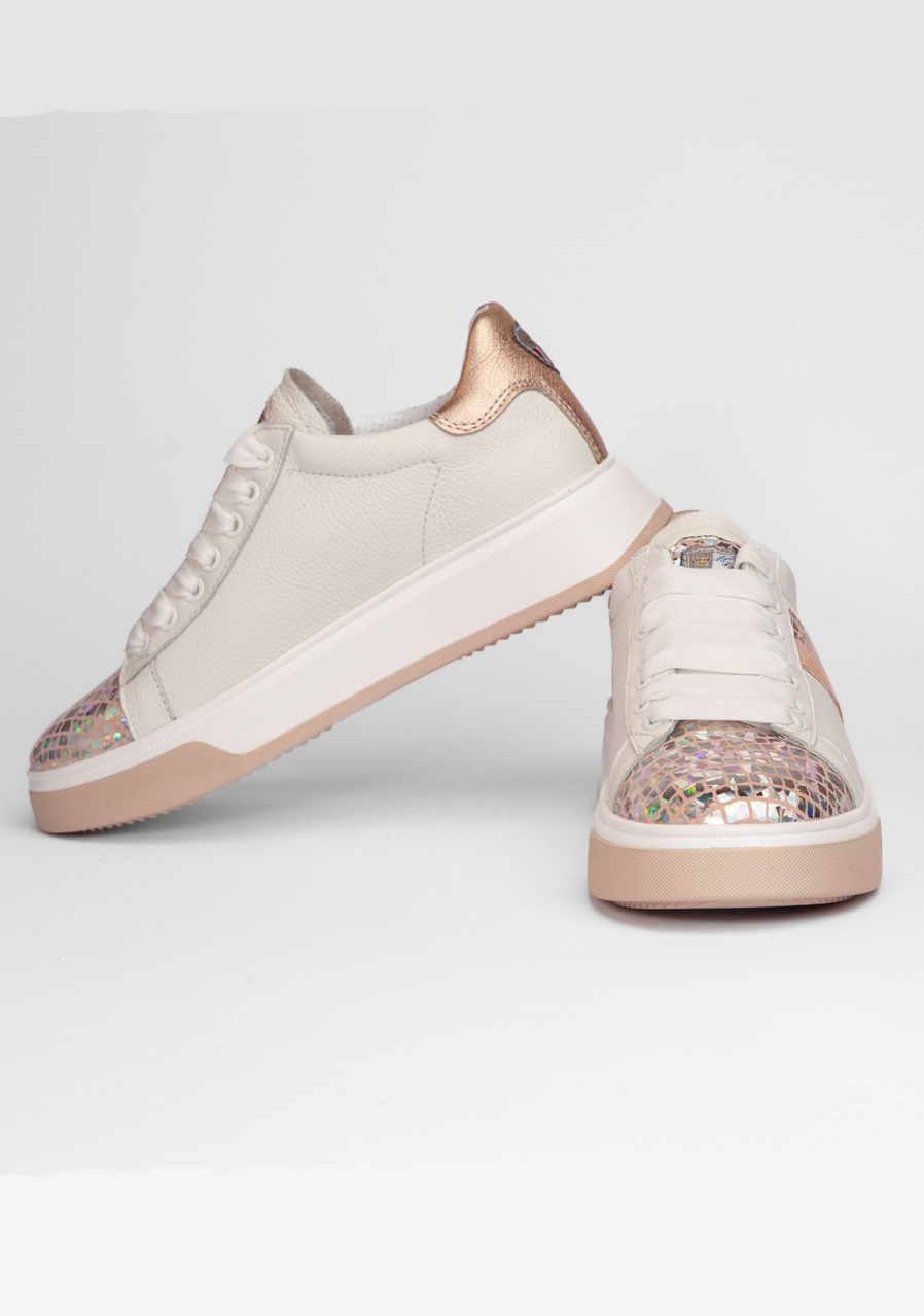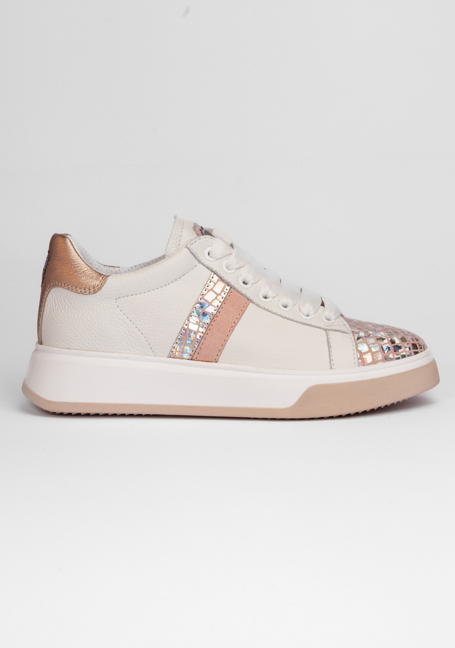 Tieto biele tenisky zaujmú jemným reliéfnym vzorom na koži a originálnym „Space Petra“ detailom, ktorý dodáva topánkam výrazný módny charakter. Kvalitná pravá koža zaisťuje odolnosť a dlhú životnosť, zatiaľ čo pohodlný strih a mäkká stielka poskytujú komfort pri každodennom nosení. Perfektná voľba pre mestské aj voľnočasové outfity.