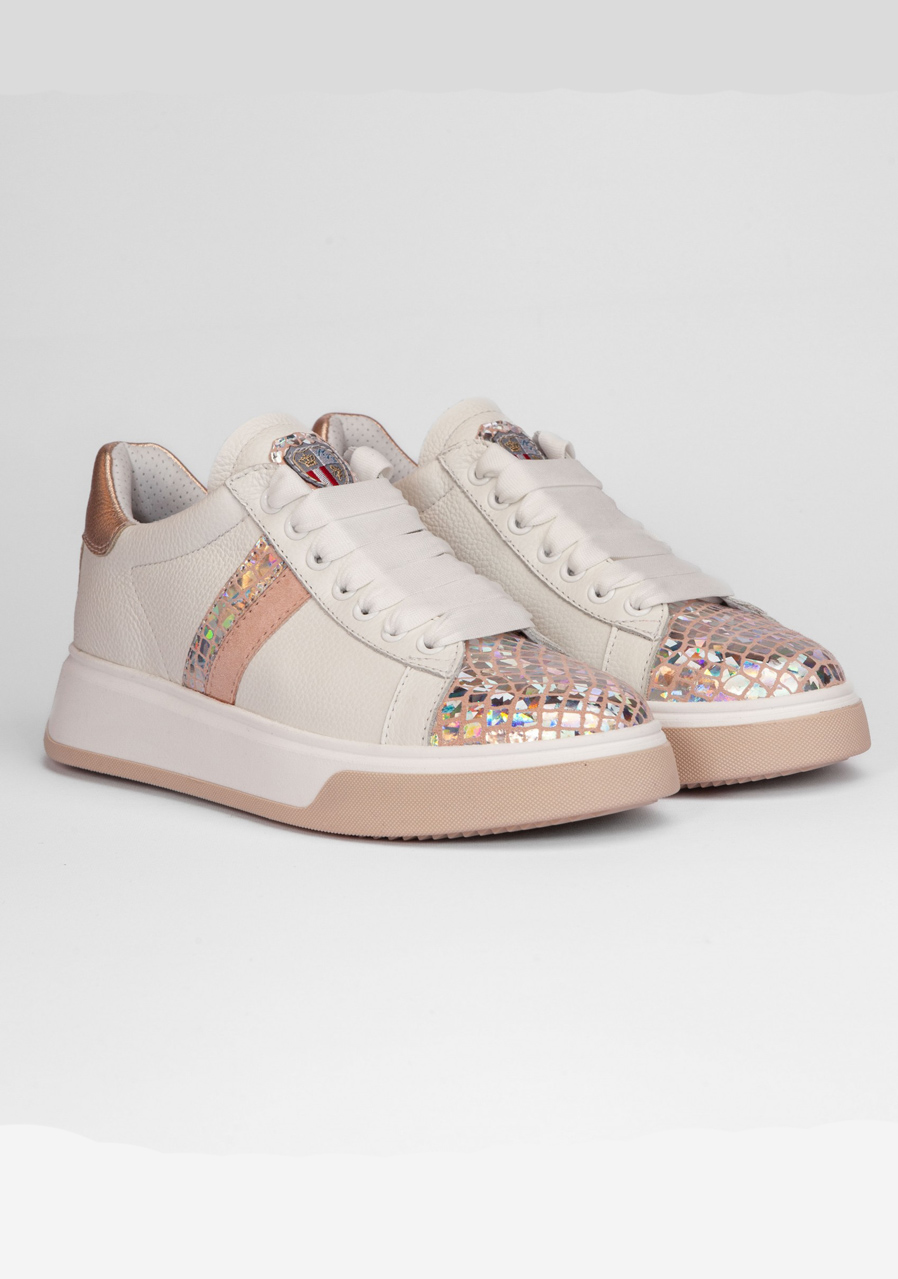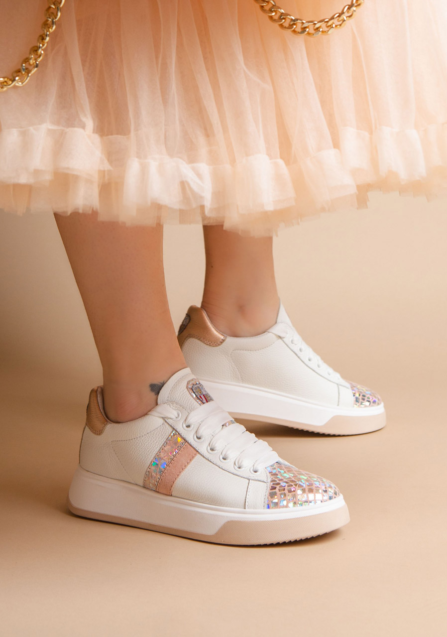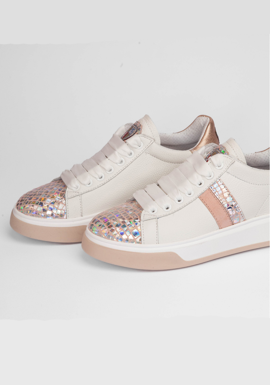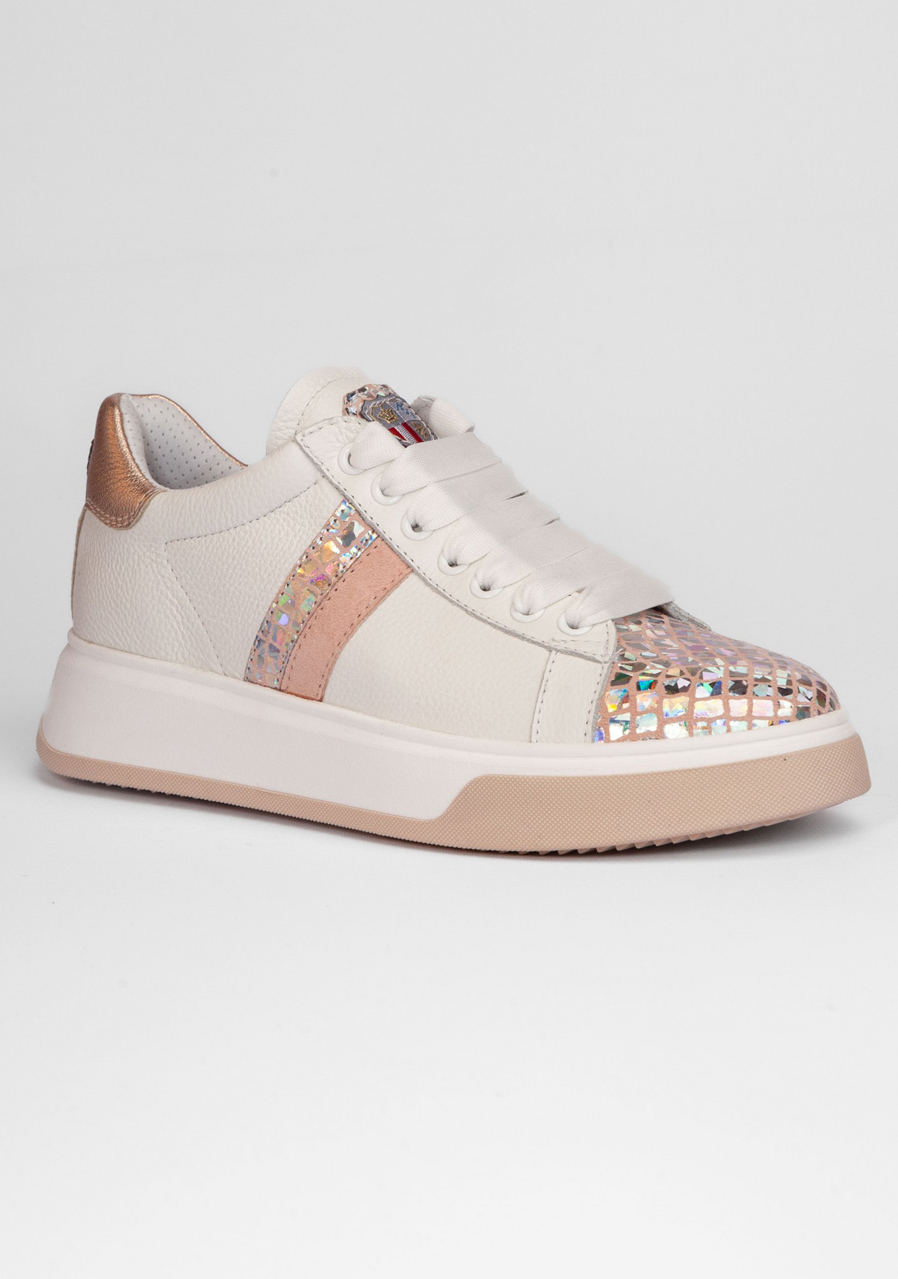 Tieto biele tenisky zaujmú jemným reliéfnym vzorom na koži a originálnym „Space Petra“ detailom, ktorý dodáva topánkam výrazný módny charakter. Kvalitná pravá koža zaisťuje odolnosť a dlhú životnosť, zatiaľ čo pohodlný strih a mäkká stielka poskytujú komfort pri každodennom nosení. Perfektná voľba pre mestské aj voľnočasové outfity.