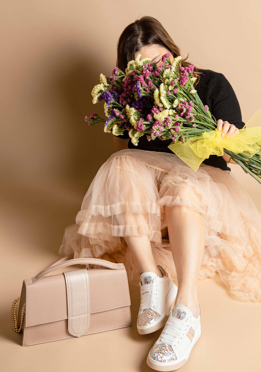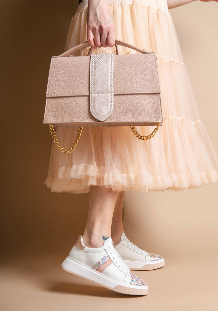 Zvršok : pravá koža (pelle stampata) + ozdobný detail (Space Petra)