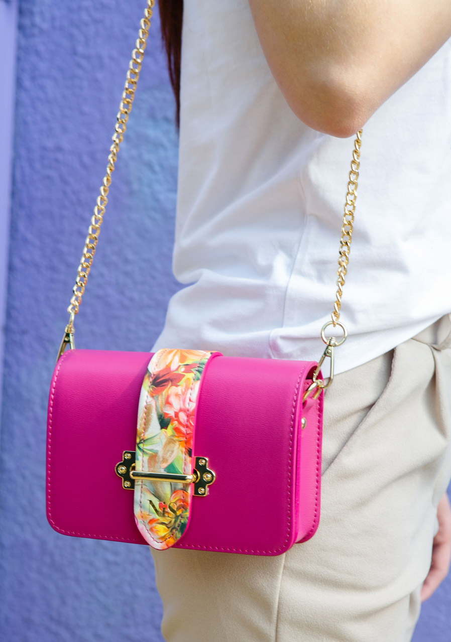 Táto mini kabelka v živej fuchsiovej farbe je ideálnym doplnkom pre každú príležitosť. Elegantný a kompaktný dizajn umožňuje pohodlné nosenie, zatiaľ čo precízne spracovanie zaisťuje dlhú životnosť. Perfektná voľba pre mestské aj voľnočasové outfity, kedy chcete dodať svojmu looku šmrnc a farebný akcent.