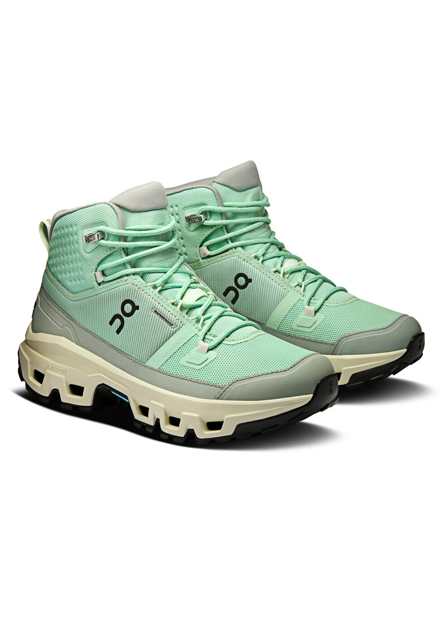 Dámske turistické topánky On Running Cloudrock Mid WP vo farebnej kombinácii Mineral/Aloe sú navrhnuté pre ženy, ktoré vyžadujú ľahkosť, odolnosť a spoľahlivú ochranu v každom počasí. Vodeodolná membrána chráni pred dažďom a vlhkosťou, zatiaľ čo konštrukcia z technickej sieťoviny poskytuje výbornú priedušnosť a flexibilitu. Medzipodrážka z peny Helion™ s technológiou CloudTec® sa stará o mäkké, plynulé tlmenie a prirodzený došľap aj v náročnom teréne. Podrážka Missiongrip™ zaisťuje vynikajúcu trakciu a istotu kroku na mokrom kameni, blate aj sypkom podklade. Stredne vysoký strih ponúka stabilnú oporu členku bez obmedzenia pohybu. Elegantné prevedenie Mineral/Aloe spája outdoorovú funkčnosť s moderným štýlom.