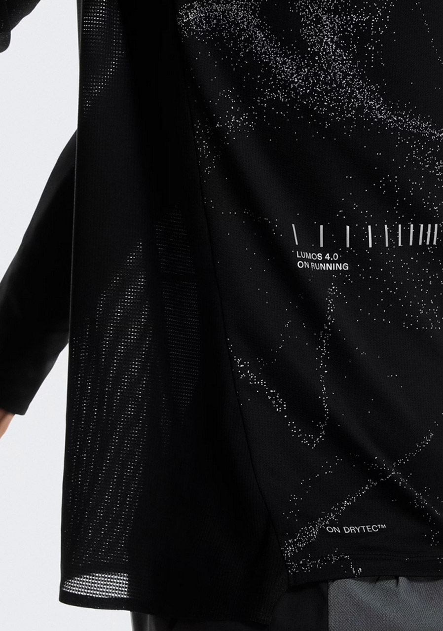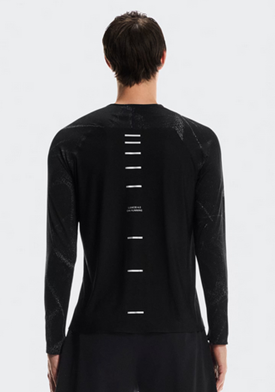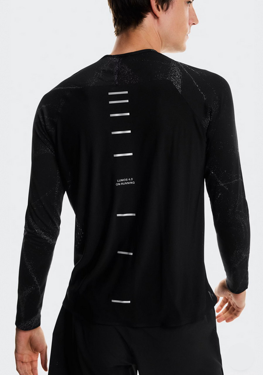 Parametre: Materiál : 100% recyklovaný polyester Strih : slim fit – priliehavý a ľahko elastický Rukávy : dlhé Reflexné prvky : Lumos – pre vyššiu viditeľnosť v tme Vlastnosti : rýchloschnúce, priedušné, ľahké Farba : Black (čierna) Vhodné pre : beh, tréning, športové aktivity, každodenné nosenie