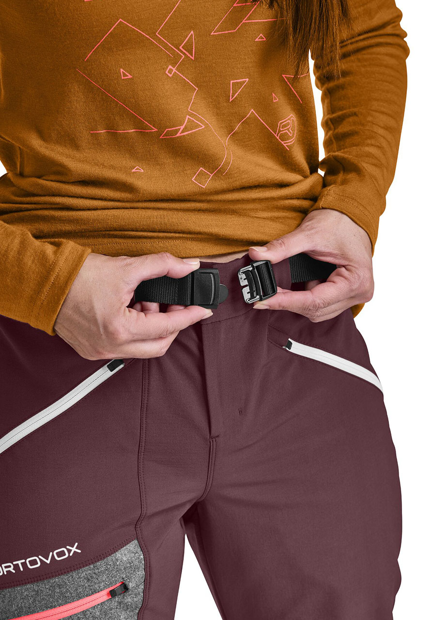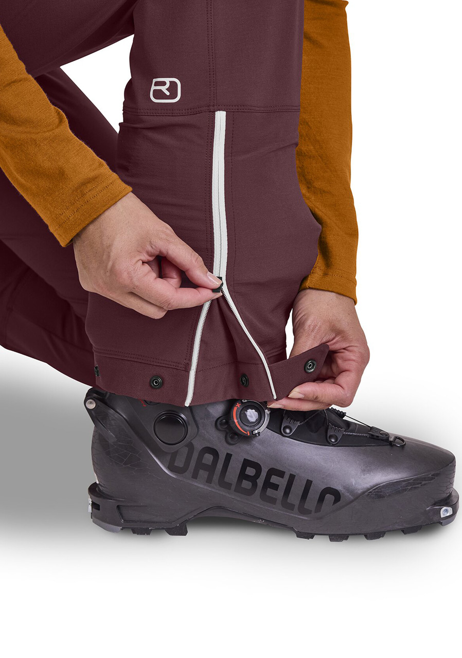 Vysoce funkční a všestranné dámské kalhoty Ortovox Cevedale Pants W v barvě Black Raven jsou ideálním společníkem pro náročné lyžařské túry i horolezectví. Tyto kalhoty jsou vyrobeny z pružného materiálu Merino Airsolation, který je nejen odolný proti oděru, větru a vodě, ale také nabízí vynikající izolační vlastnosti díky drážkované struktuře na vnitřní straně. Skvěle vás ochrání i v těch nejtěžších povětrnostních podmínkách, a zároveň jsou dostatečně prodyšné, aby poskytovaly komfort i za slunečných dnů.