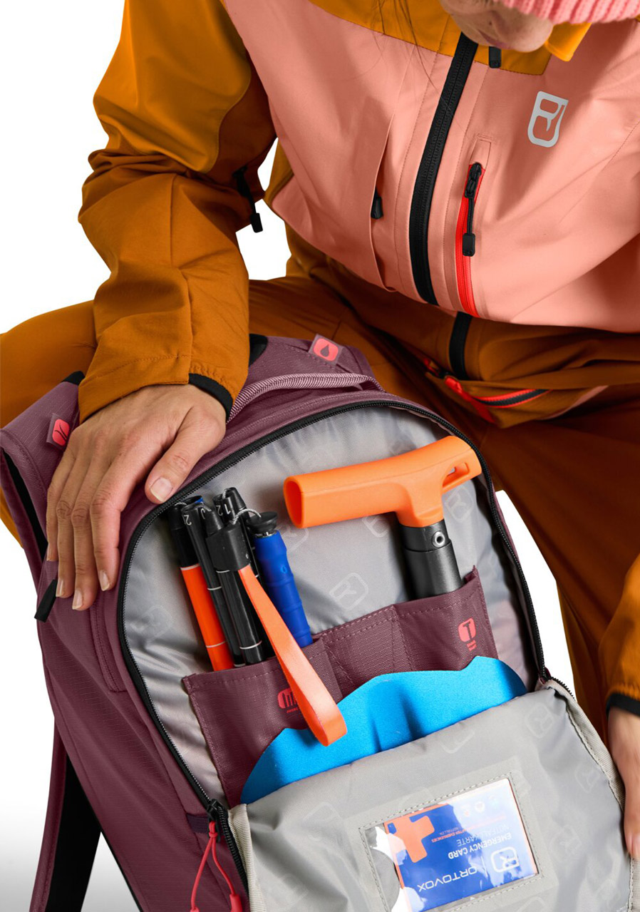 Batoh Ortovox Free Rider 20 S je navrhnutý špeciálne pre freeride a skialpinizmus, kde hrá rolu bezpečnosť, pohodlie aj múdra funkčnosť. Variant S (short back) má skrátený chrbtový panel, takže perfektne sedí ženám a osobám s kratšou dĺžkou chrbta. Inovatívny chrbtový systém s integrovaným chráničom chrbtice Clasp Spine Protector prináša maximálnu ochranu v náročnom teréne. Objem 20 litrov pojme nevyhnutné vybavenie, lavínovú výbavu aj drobnosti na celodennú túru. Batoh ponúka množstvo úchytov pre lyže, snowboard, cepín či helmu a vďaka premyslenému rozloženiu vreciek máte všetko rýchlo po ruke. Farebné prevedenie Dirty Daisy podčiarkuje moderný a športový vzhľad.