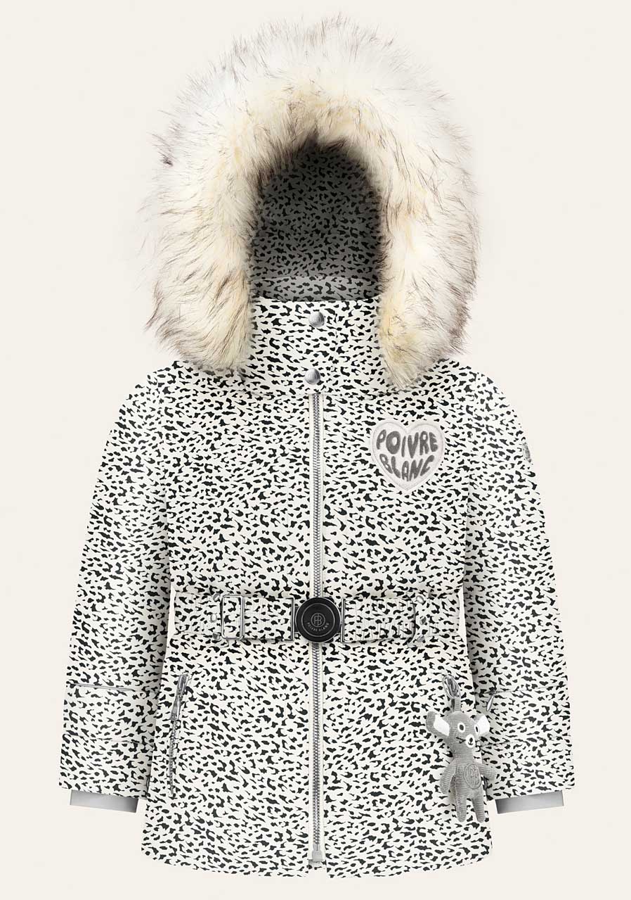 Dětská bunda Poivre Blanc pro nejmenší je stylová a funkční zimní bunda, která poskytuje maximální komfort a ochranu v chladných podmínkách. Vyrobena z kvalitního 100% polyesteru s DWR laminací pro voděodolnost (WP 10K mm) a prodyšnost (MVP 10K g/m2/24h). Bunda je zateplená syntetickým peřím jak na těle, tak v rukávech, což zajišťuje teplo a pohodlí i při nízkých teplotách.