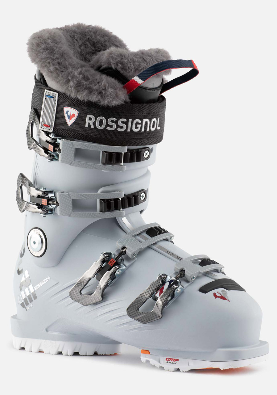 Rossignol PURE PRO 90 GW. Špičkový design skeletu zkonstuovaný specificky pro ženy, který je spojen s přizpůsobitelnými vnitřními botičkami. Boty jsou určeny pro lyžařky, které preferují tvar boty střední šířky 100mm. Nastavitelný flex a boční sklon vám umožní přizpůsobit charakter a odezvu boty tak, aby odpovídala vašemu lyžování. Naše předtvarovaná vnitřní botička se zateplením MERINO udržuje nohy v teple ve vlhkých a chladných podmínkách a maximalizuje pohodlí, díky tepelně tvarovatelnému materiálu, který se přizpůsobí dámskému chodidlu. Zádní část komínu je snížená ve tvaru tulipánu a vylučuje tak přílišný tlak v oblasti lýtkového svalu.