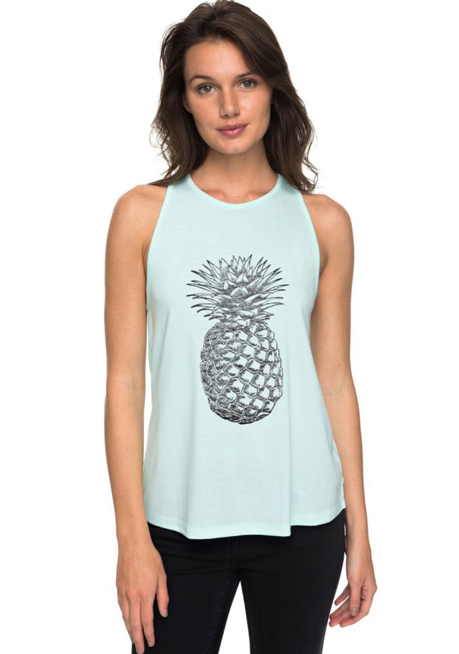 Dámské stylové tílko Roxy s velkým potiskem na přední straně. Hlubší průramky a volnější střih umožní se cítit pohodlně a volně během jakékoliv činnosti. Na zadní straně najdete ozdobnou krajku, která dodává tílku elegantní vzhled. Tílko dobře odvádí vlhkost a je příjemné po celý den nošení.