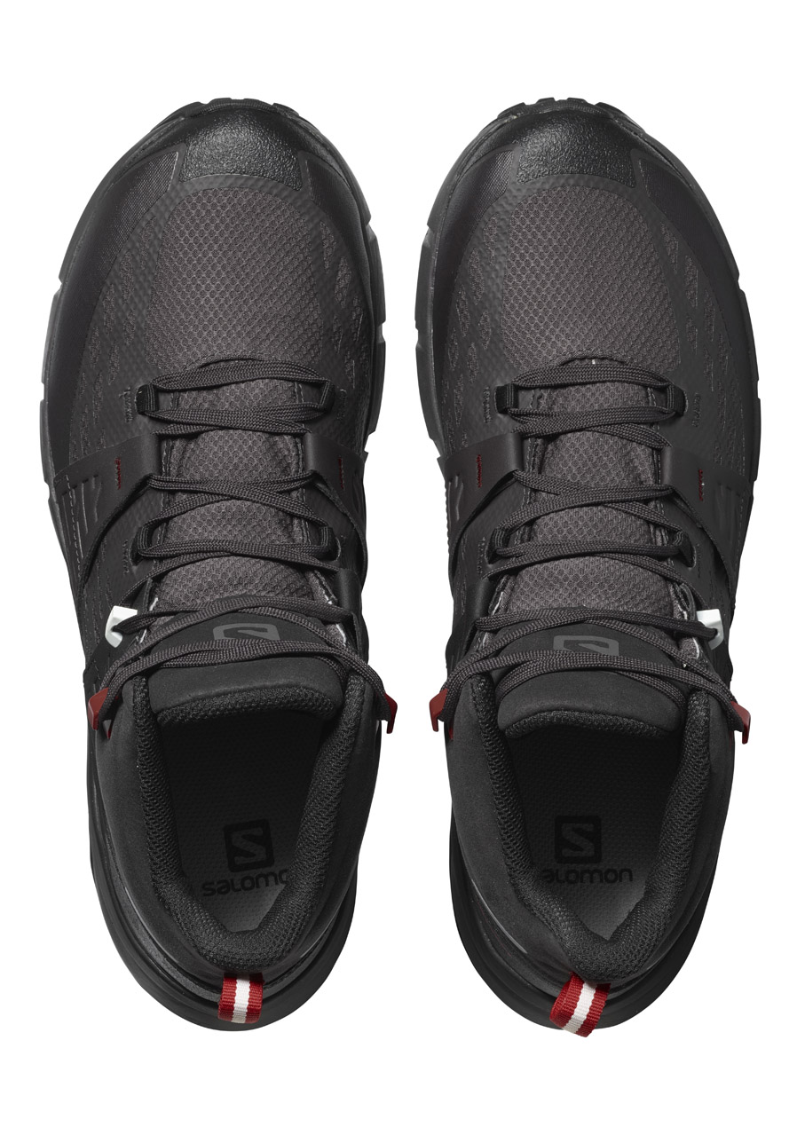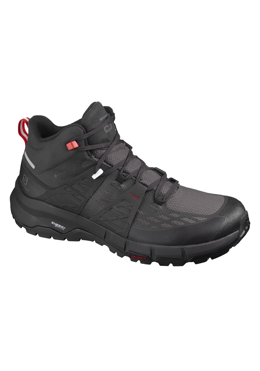 Popis:Pánske turistické topánky Salomon ODYSSEY MID GTX – Black / Shale / High Risk Red