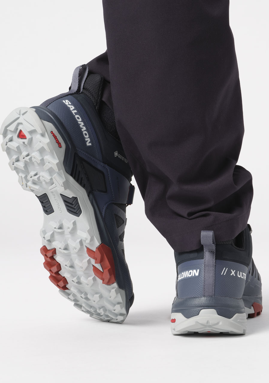 Salomon X ULTRA 4 GTX nadväzuje na osvedčenú radu turistických topánok, tentokrát s vylepšenou stabilitou, vyššou ochranou členku a väčšou voľnosťou pohybu. Vďaka nepremokavej membráne GORE-TEX® sú vhodné aj do mokra a dažďa, zatiaľ čo podvozok ADV-C Chassis™ chráni členok pred vyvrtnutím a zabezpečuje oporu v nerovnom teréne. Podrážka Contagrip® MA poskytuje spoľahlivý záber na klzkých kameňoch, blate aj tvrdých horských chodníkoch.