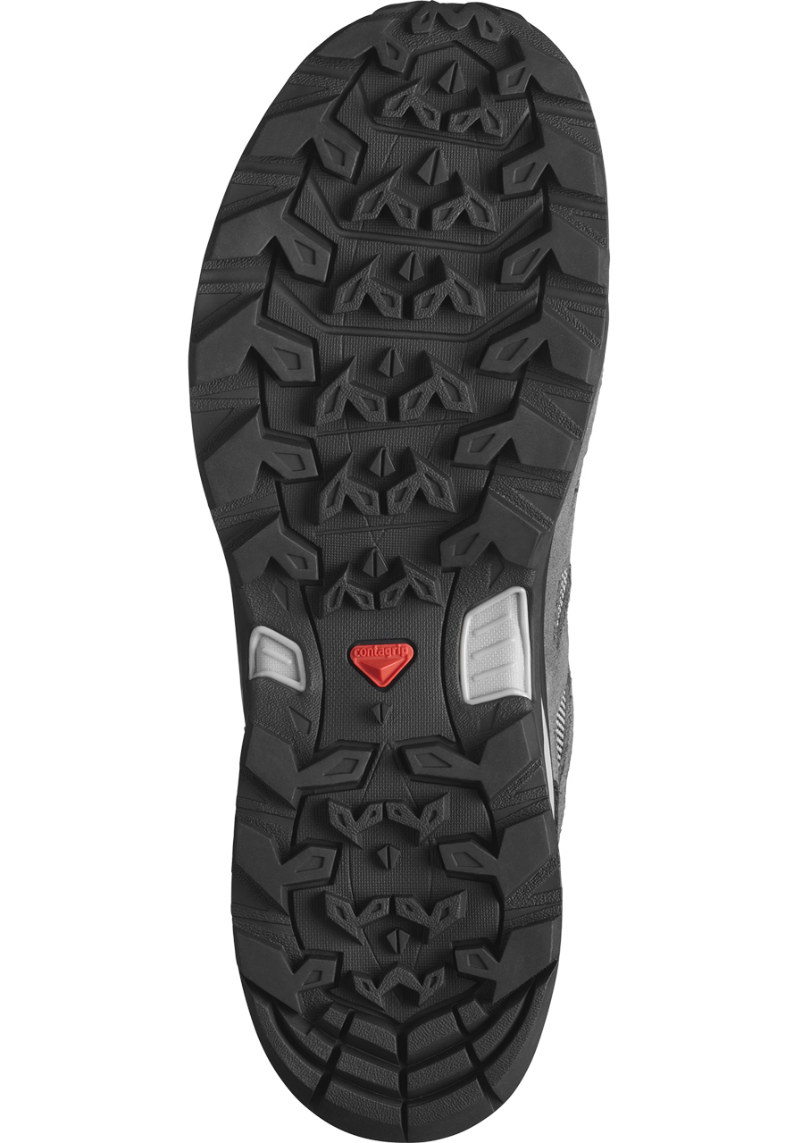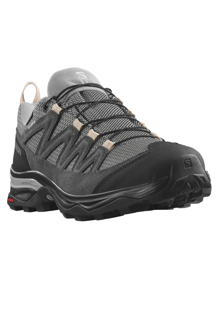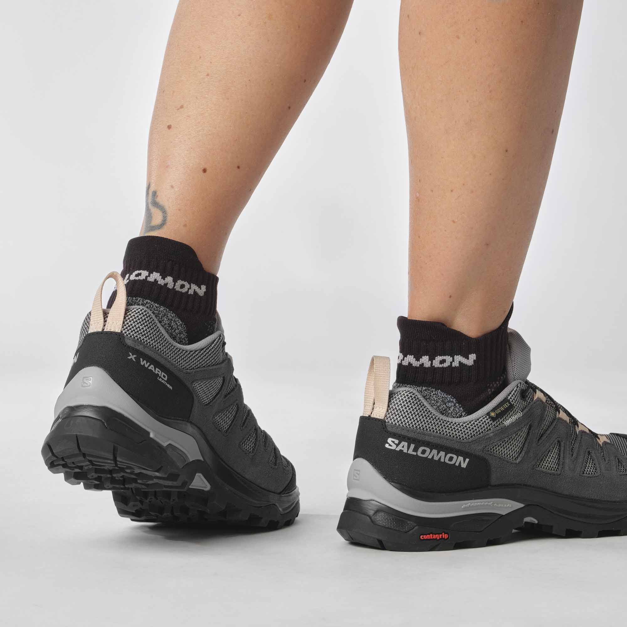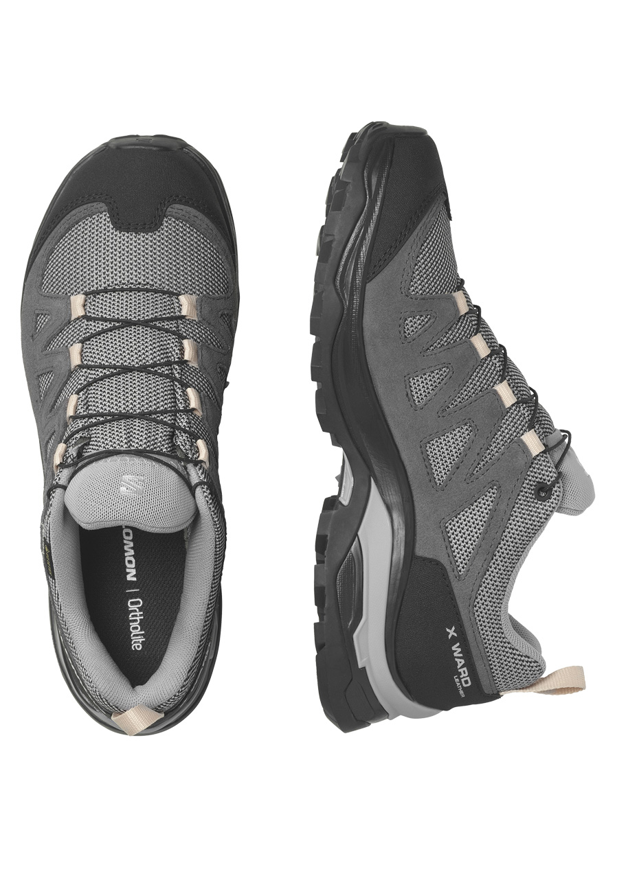 Popis:Dámske turistické topánky Salomon X WARD LEATHER GTX W – Gull / Black / Ebony
