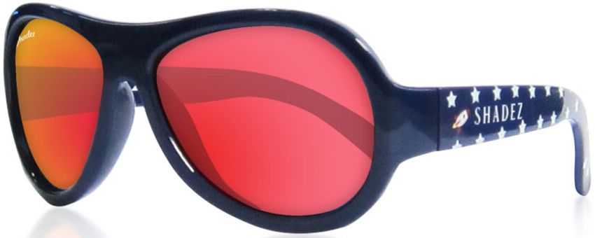 Slnečné okuliare Shadez Rocket Star pre deti vo veku 3 až 7 rokov majú tmavomodrý rám s motívom hviezd. Poskytujú 100% ochranu proti UVA a UVB žiareniu. Zorníky Revo minimalizujú odlesky a zabezpečujú ostré videnie. Rám je mimoriadne pružný, ľahký a vyrobený bez BPA. Sklo je odolné voči nárazom a rozbitiu.