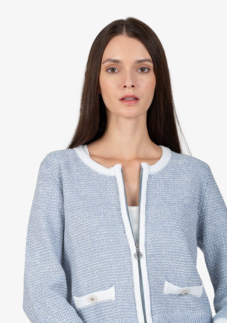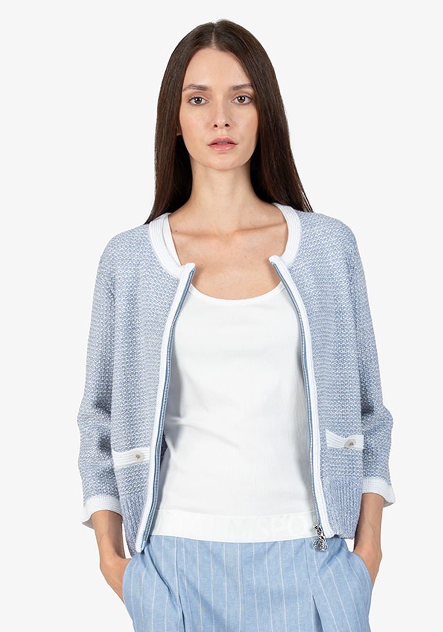 Tento módní kardigan ve stylu bomber bundy upoutá pozornost díky speciální technice pletení z různých přízí. Spojuje elegantní šik s jedinečnou texturou, což dodává outfitu stylový a moderní nádech. Slim střih zvýrazňuje ženskou postavu, zatímco 3/4 rukávy se širokými lemy a dvoucestný zip zajišťují maximální pohodlí a praktičnost. Ideální pro ty, které hledají originální kousek do svého šatníku.