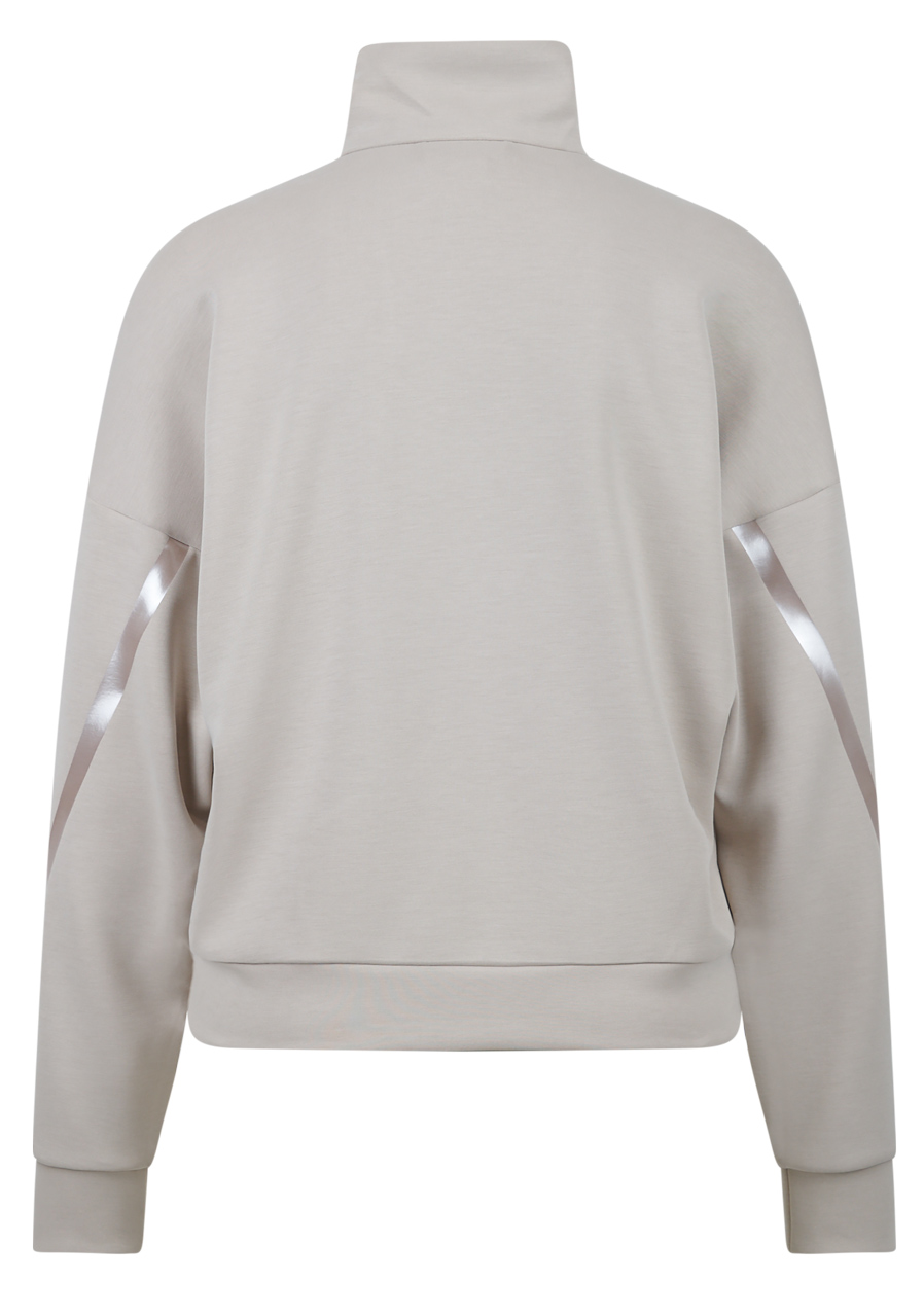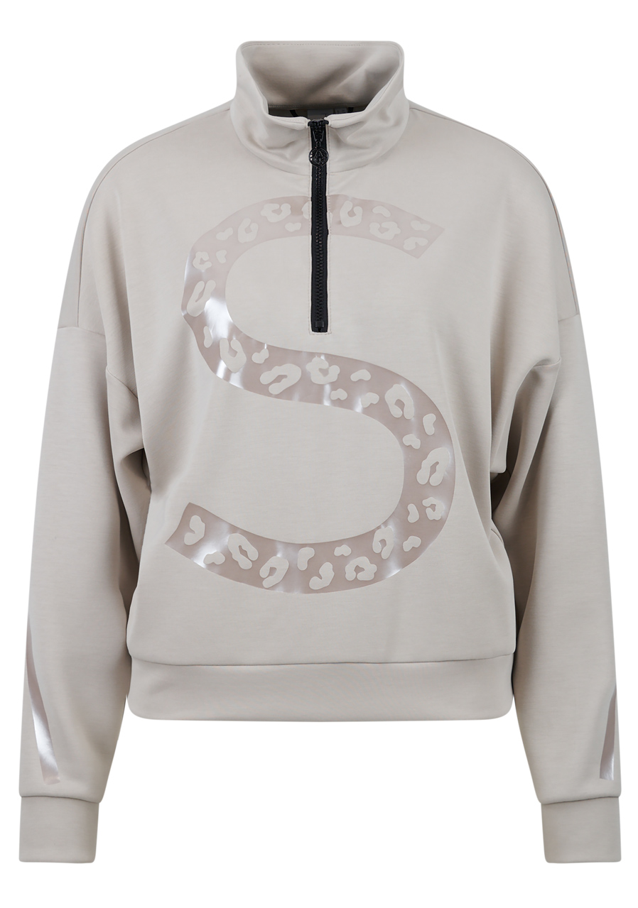 Ďalšie parametre: Materiál: bavlnený úplet Strih: voľný Štýl: módny, športový Výstrih: vysoký stojačik s krátkym viditeľným zipsom uprostred predného dielu Rukávy: dlhé s manžetami, spadnuté ramená, športové pásiky na predlaktí Zvýraznenie: veľké laserom gravírované „S“ Sportalm na prednej strane, manžety v leme