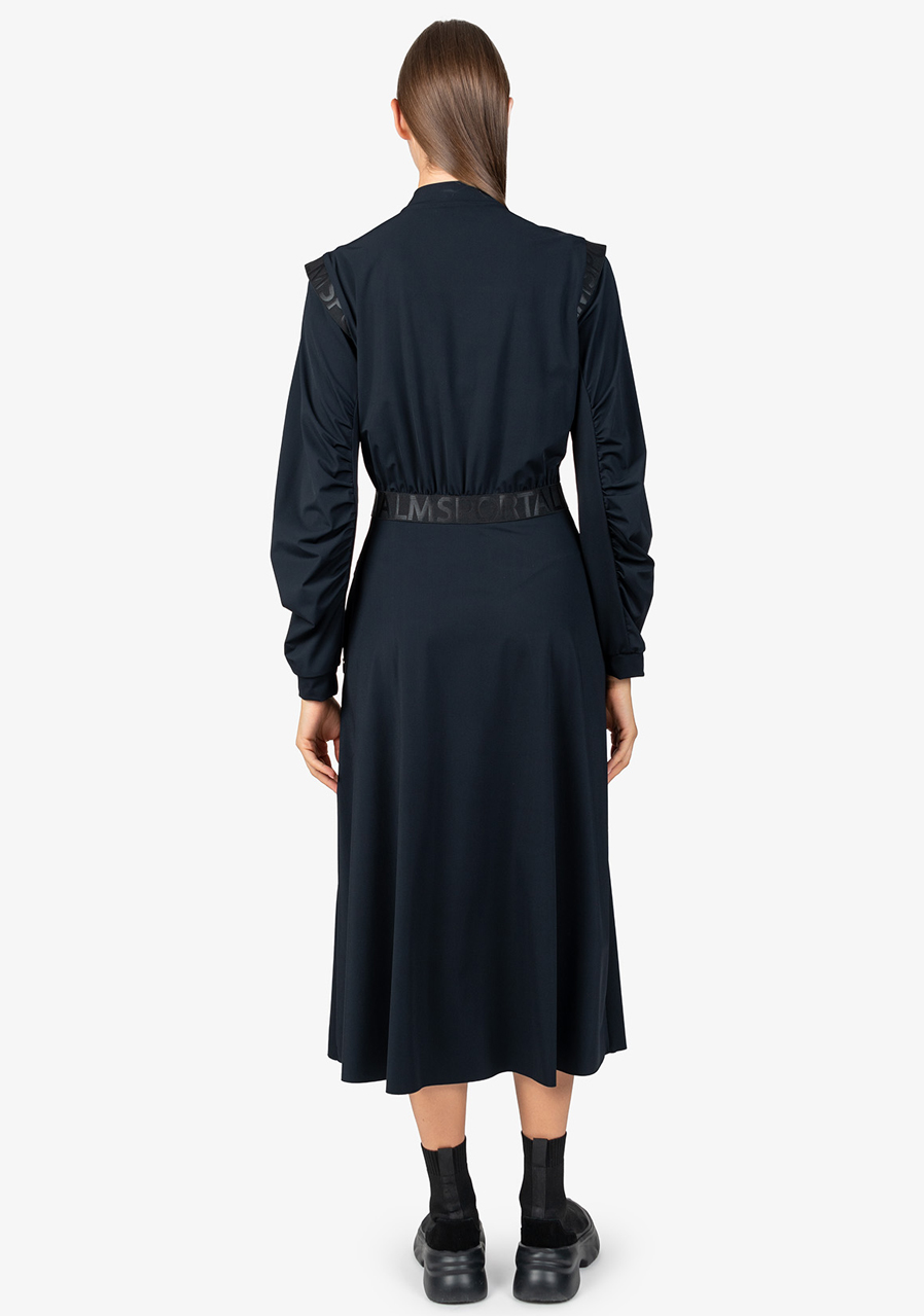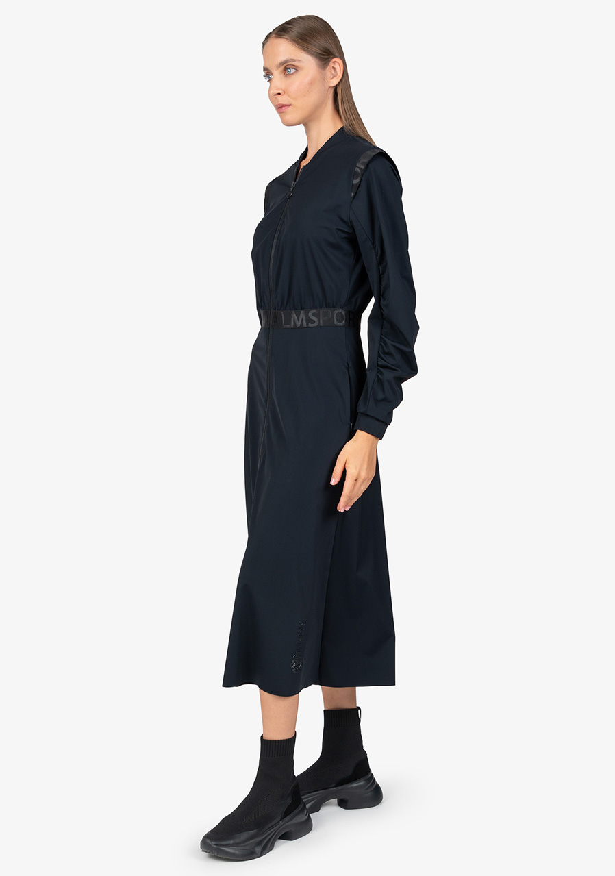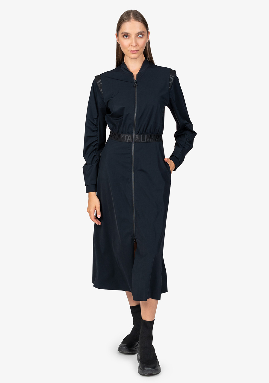 Další parametry: Detailní prvky jako vysokoškolský límec, objemné nabírané rukávy a blousonový top s elastickým pasem dodávají kabátu stylový charakter. Rozparek vpředu, efektní neopracované okraje a potisk nápisu na lemu sukně přidávají na originalitě.