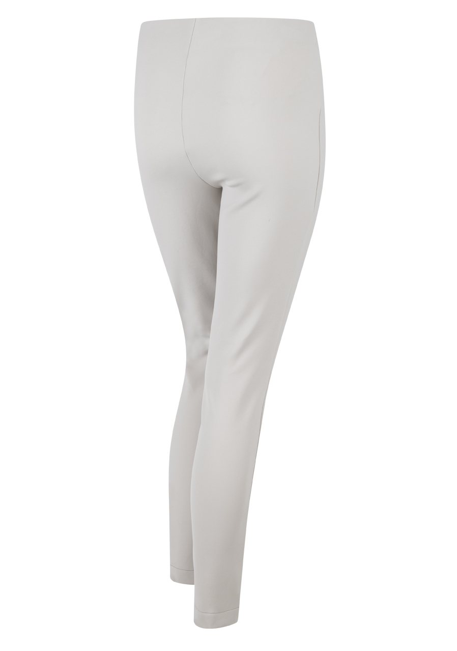 Moderné legíny zaujmú výrazným kontrastom materiálov a sofistikovaným, mestským vzhľadom. Predný diel z imitácie kože dodáva modelu štýlový akcent, zatiaľ čo zadné a bočné panely zo scuba materiálu zaisťujú komfort, pružnosť a príjemné nosenie. Priliehavá silueta podčiarkuje ženské línie a elastický pás na vnútornej strane sa postará o pohodlné usadenie po celý deň. Funkčným a designovým detailom je zips v spodnej časti predného lemu nohavíc.