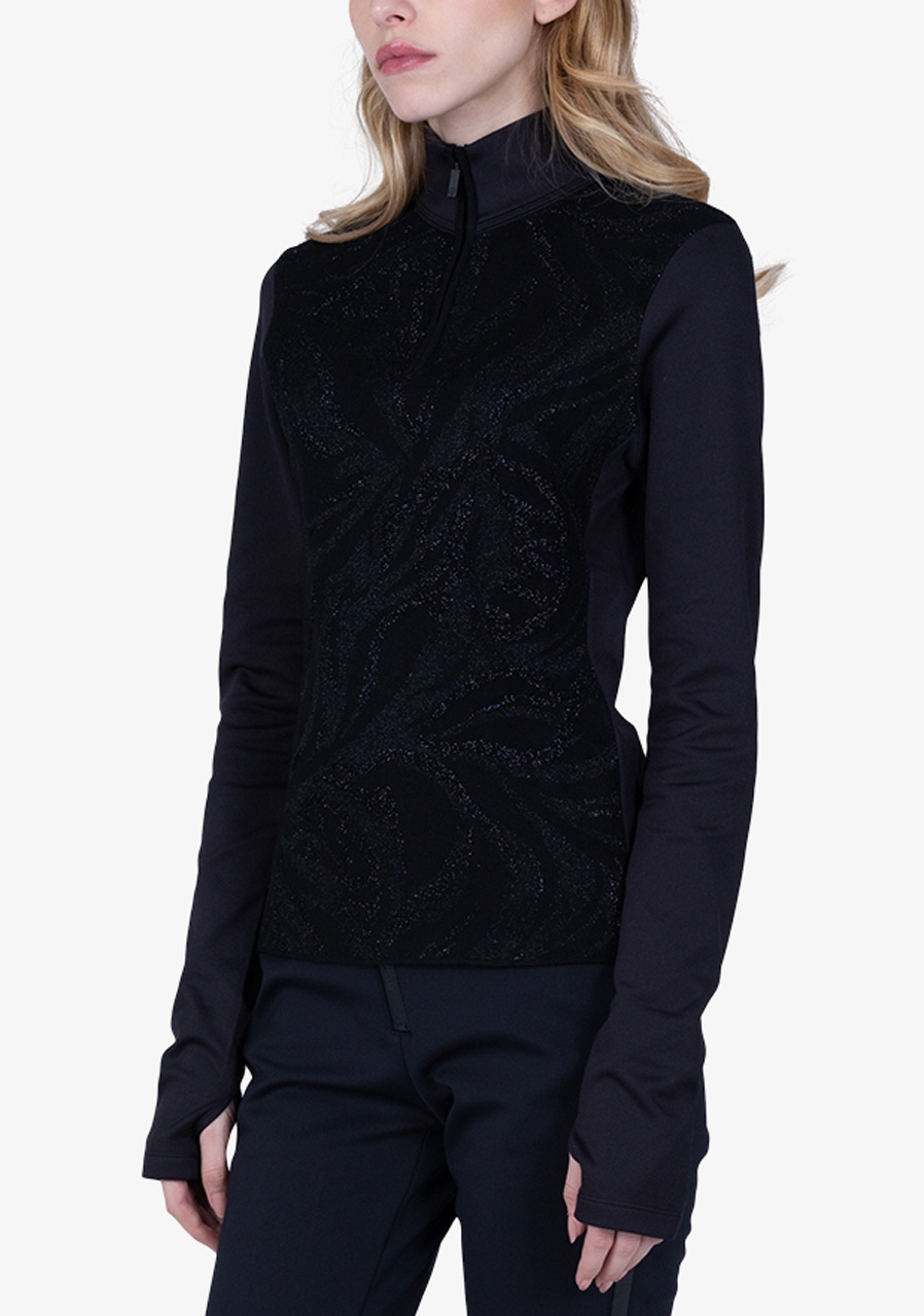 Parametre: Materiál : 85% polyamid, 15% elastan Strih : priliehavý, elastický Golier : rolákový, pohodlne obopínajúci krk Rukávy : dlhé Dizajn : jednofarebné čierne prevedenie (59) s decentnými detailmi Sportalm Sezóna : celoročné, vhodný pre vrstvenie aj samostatné nosenie