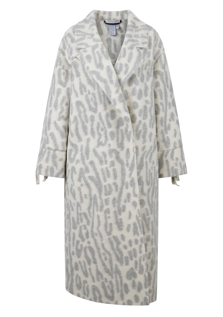 Tento výrazný kabát po lýtka z kvalitnej vlnenej zmesi zaujme módnym leopardím vzorom a moderným strihom. Ľahký O-tvar dodáva siluete ležérnu eleganciu a zároveň zabezpečuje pohodlné nosenie.
