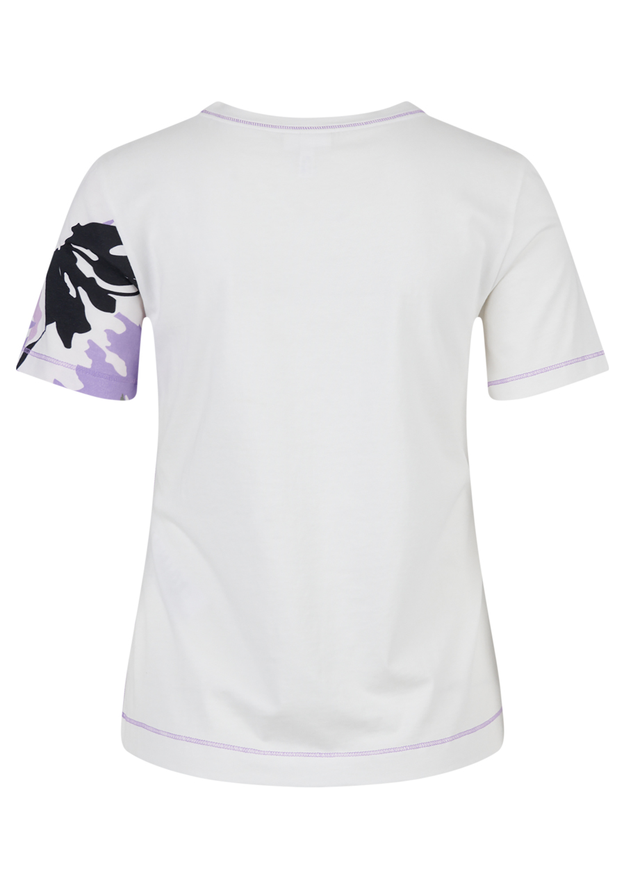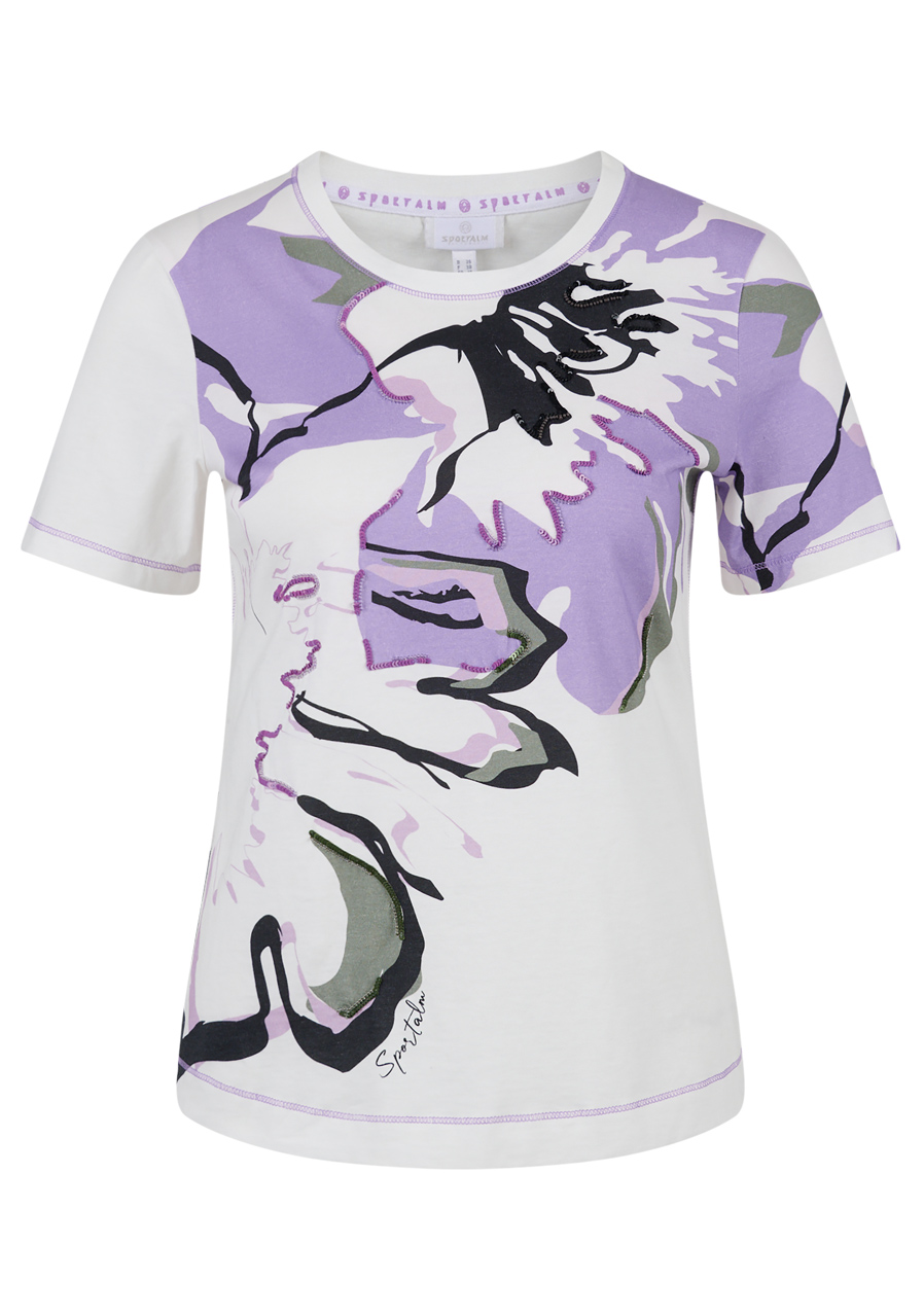 Ďalšie parametre: Strih: jemne tvarovaný Štýl: moderný, ženský Výstrih: okrúhly Detail: abstraktná kvetinová potlač na prednej strane a ľavom rukáve, dekorácie z flitrov a perličiek pre elegantný efekt