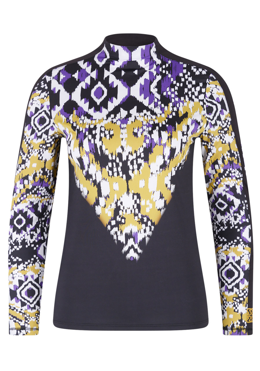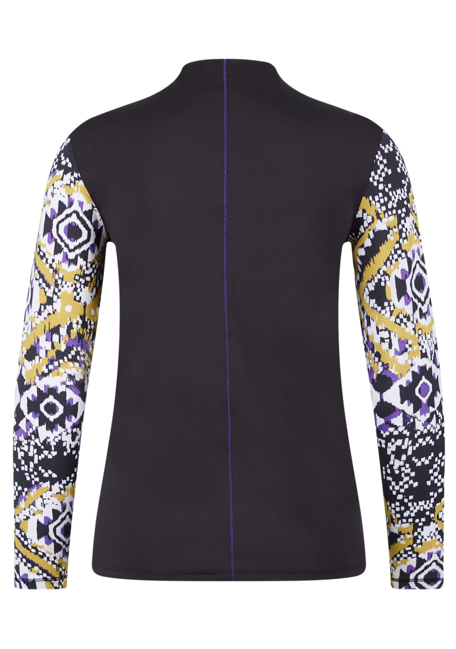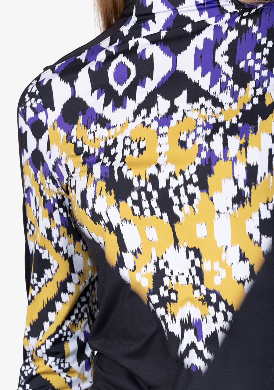 Parametre: Materiál : 85% polyester, 15% elastan Strih : priliehavý, elastický Golier : rolákový, jemne priliehajúci Rukávy : dlhé Dizajn : čierny základ s originálnou potlačou Sezóna : jeseň / zima, vhodné ako samostatný kúsok aj pod sako či sveter
