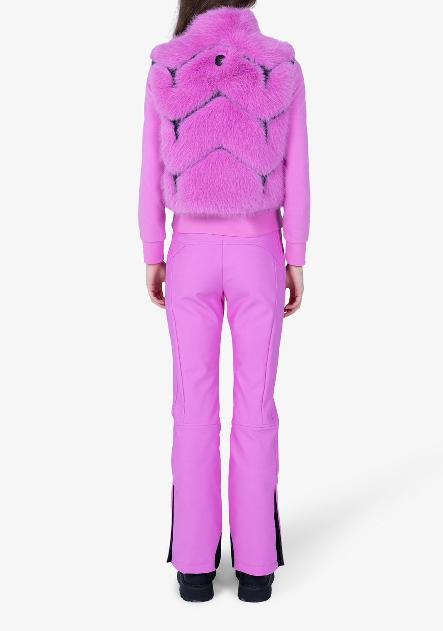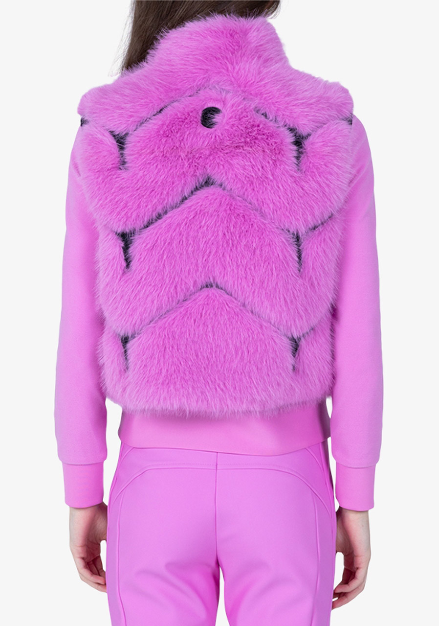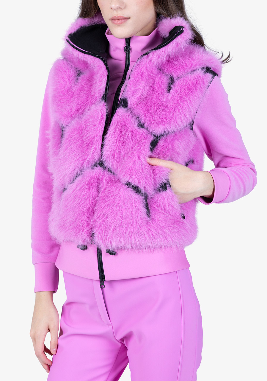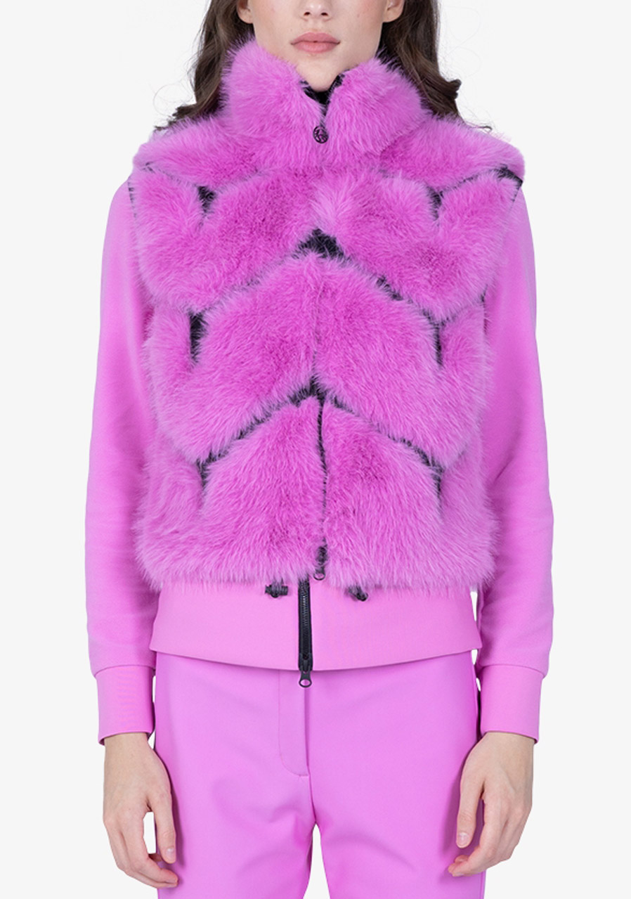 Dámska vesta Sportalm Faux Fur Vest predstavuje dokonalé spojenie luxusu, komfortu a moderného designu. Vyrobená z hebkej umelej králičej kožušiny v kombinácii s potápačskou látkou a nylonom, pôsobí elegantne a zároveň športovo. Sofistikované vsadky z potápačského materiálu dodávajú modelu modernú štruktúru, zatiaľ čo stojačik a obojsmerný kovový zips Metalux podčiarkujú prémiové spracovanie. Viditeľné vrecká na zips a vnútorná sťahovacia šnúrka v leme zaisťujú maximálnu funkčnosť. Vesta je plne podšitá a doplnená decentným kovovým nitom Sportalm na zadnej strane - ideálna pre štýlové vrstvenie počas chladnejších dní.