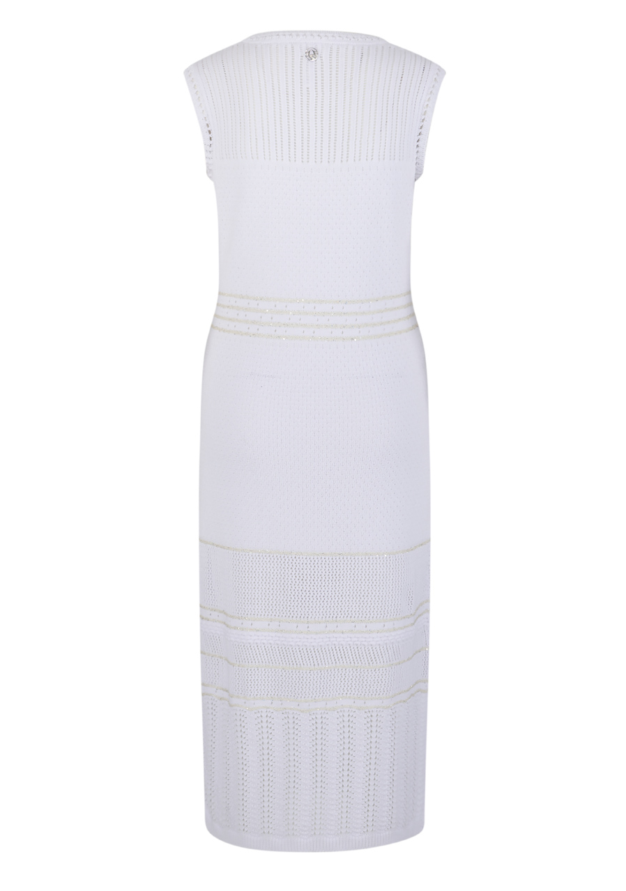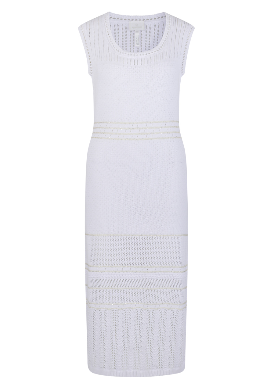 Tieto ľahké pletené šaty bez rukávov z chladivej bavlnenej priadze sú pletené v rôznych dierkovaných vzoroch. Ponúkajú pohodlné nosenie a dodávajú outfitu vzdušný a elegantný nádych, ideálne na teplé dni.