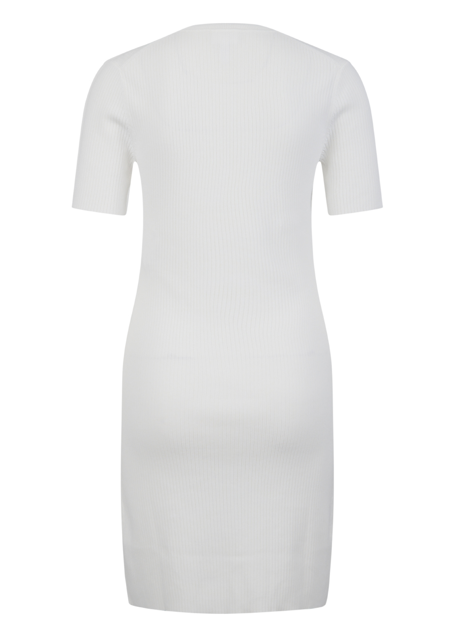 Pletené šaty s kulatým výstřihem jsou stylová volba pro každodenní eleganci s ohledem na přírodu. Tyto přiléhavé pletené šaty z recyklované viskózy a elastanu nabízejí maximální pohodlí, ženský střih a moderní vzhled. Kulatý výstřih a krátké rukávy podtrhují jednoduchost designu, zatímco abstraktní paisley výšivka vpředu dodává jemný akcent. Falešná lemovací kapsa s dekorativním knoflíkem pak vytváří zajímavý detail.