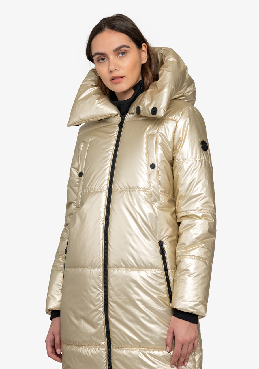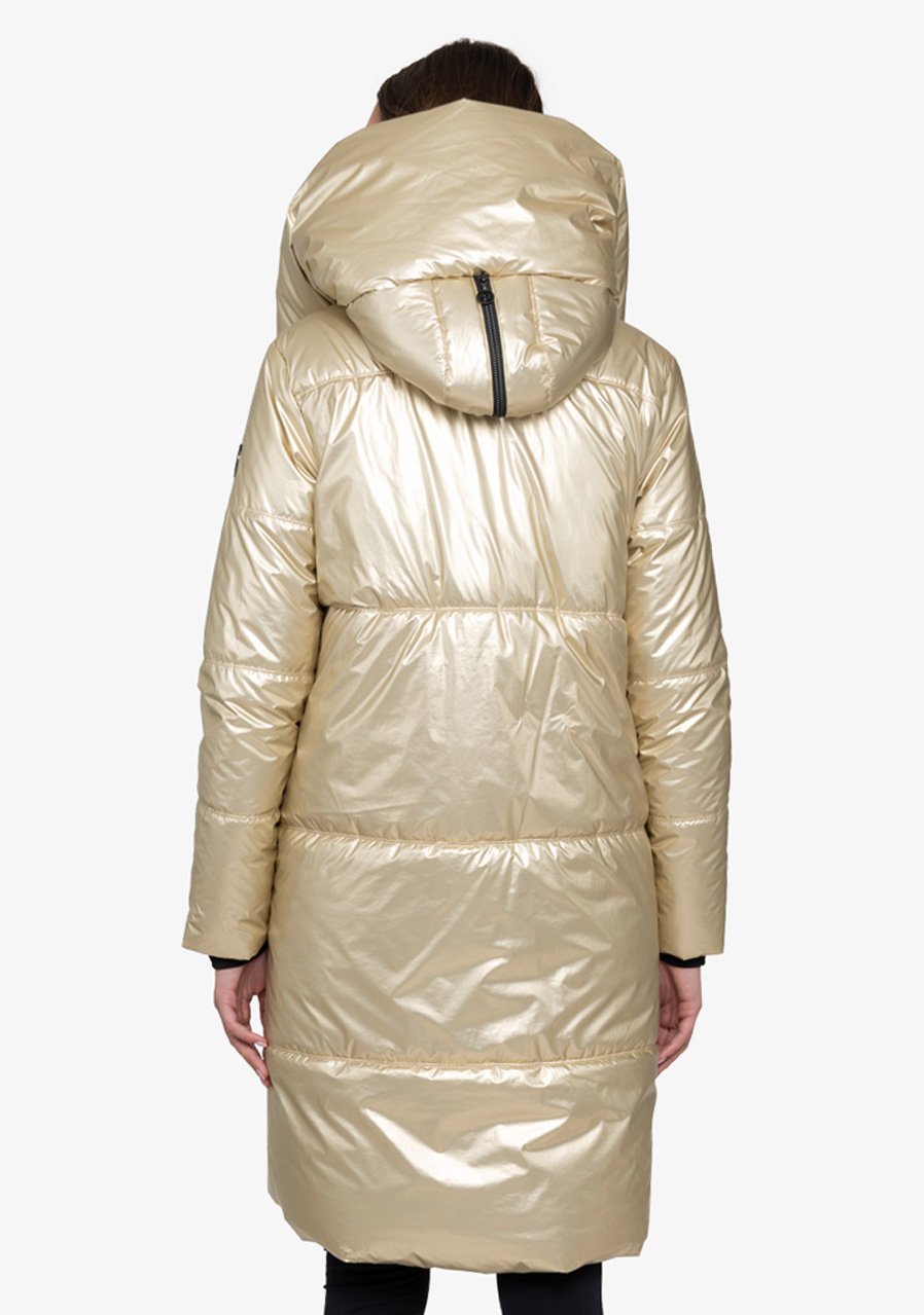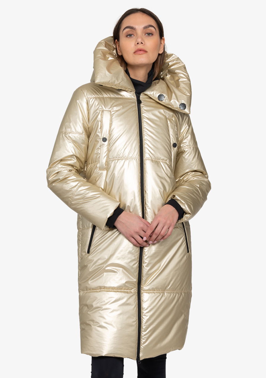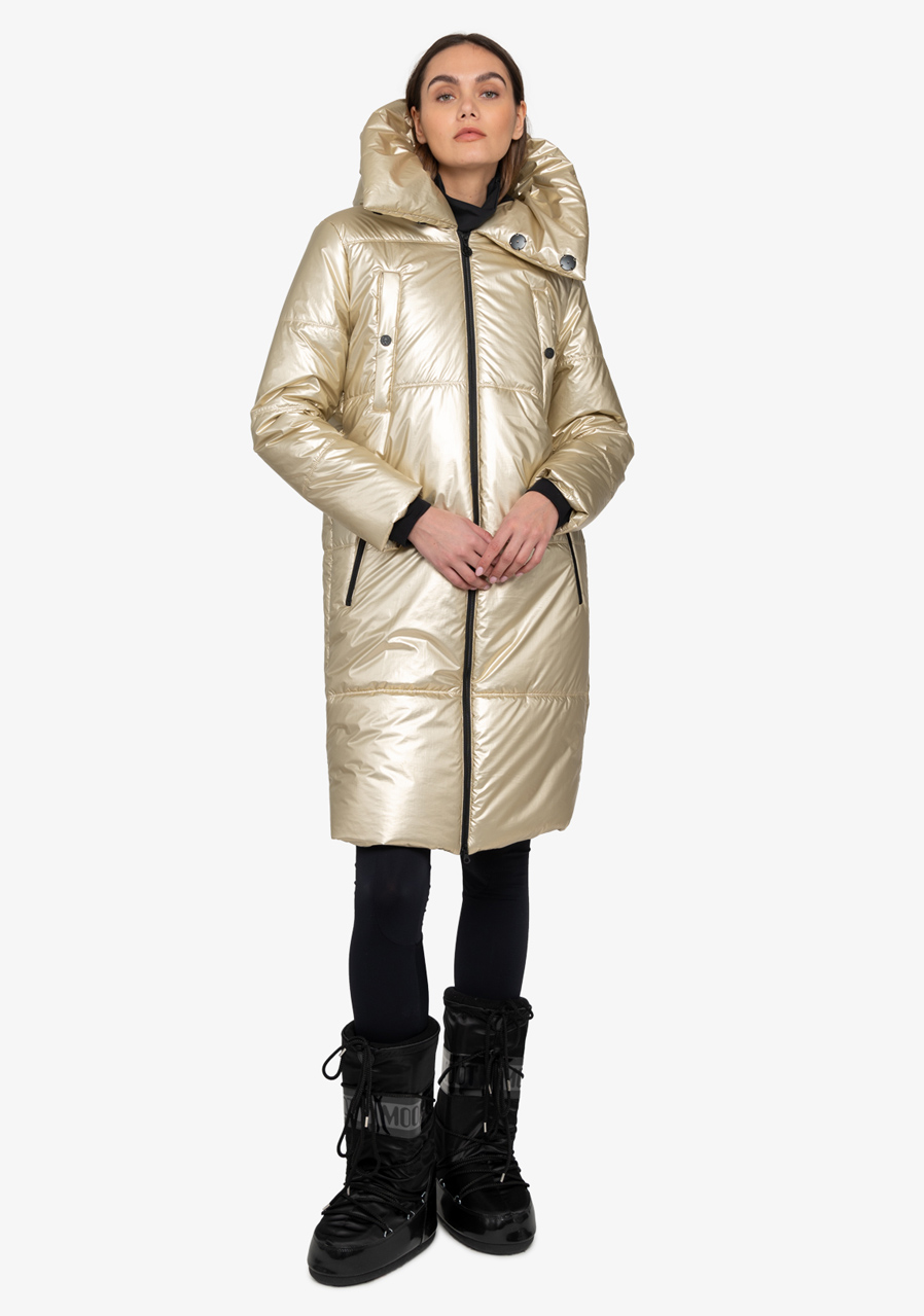 - dámský módní kabát s kapucí z kovového nylonu s dynamickým dotekem