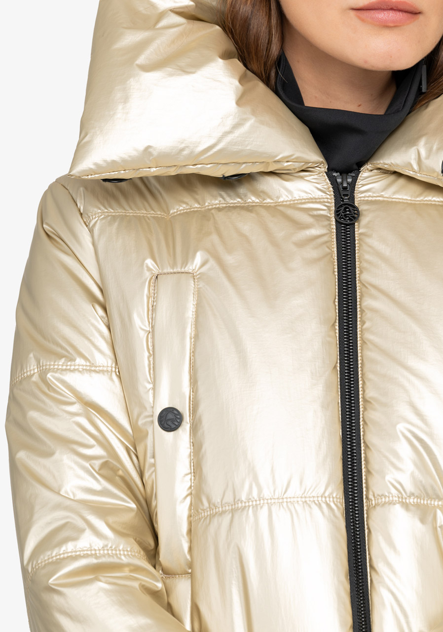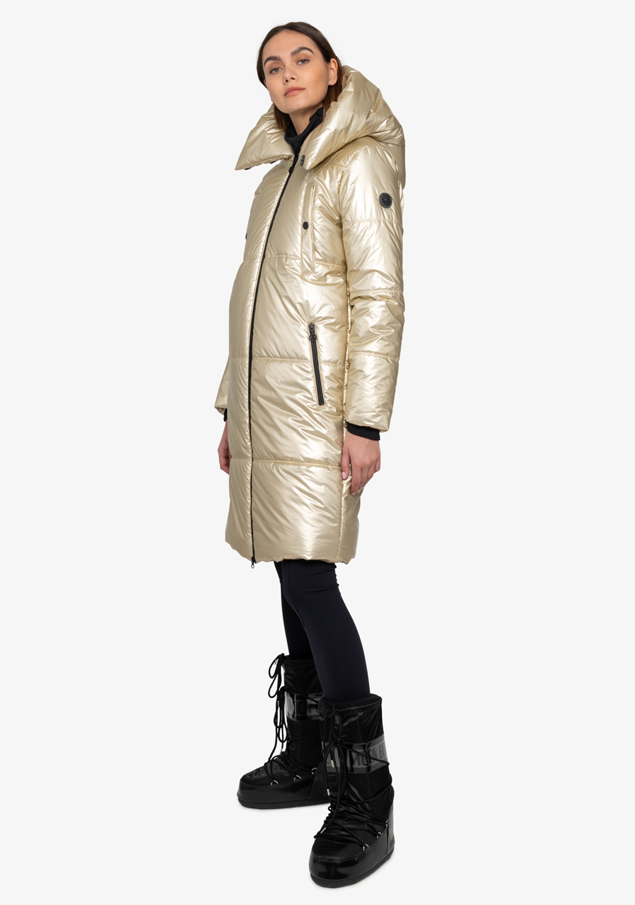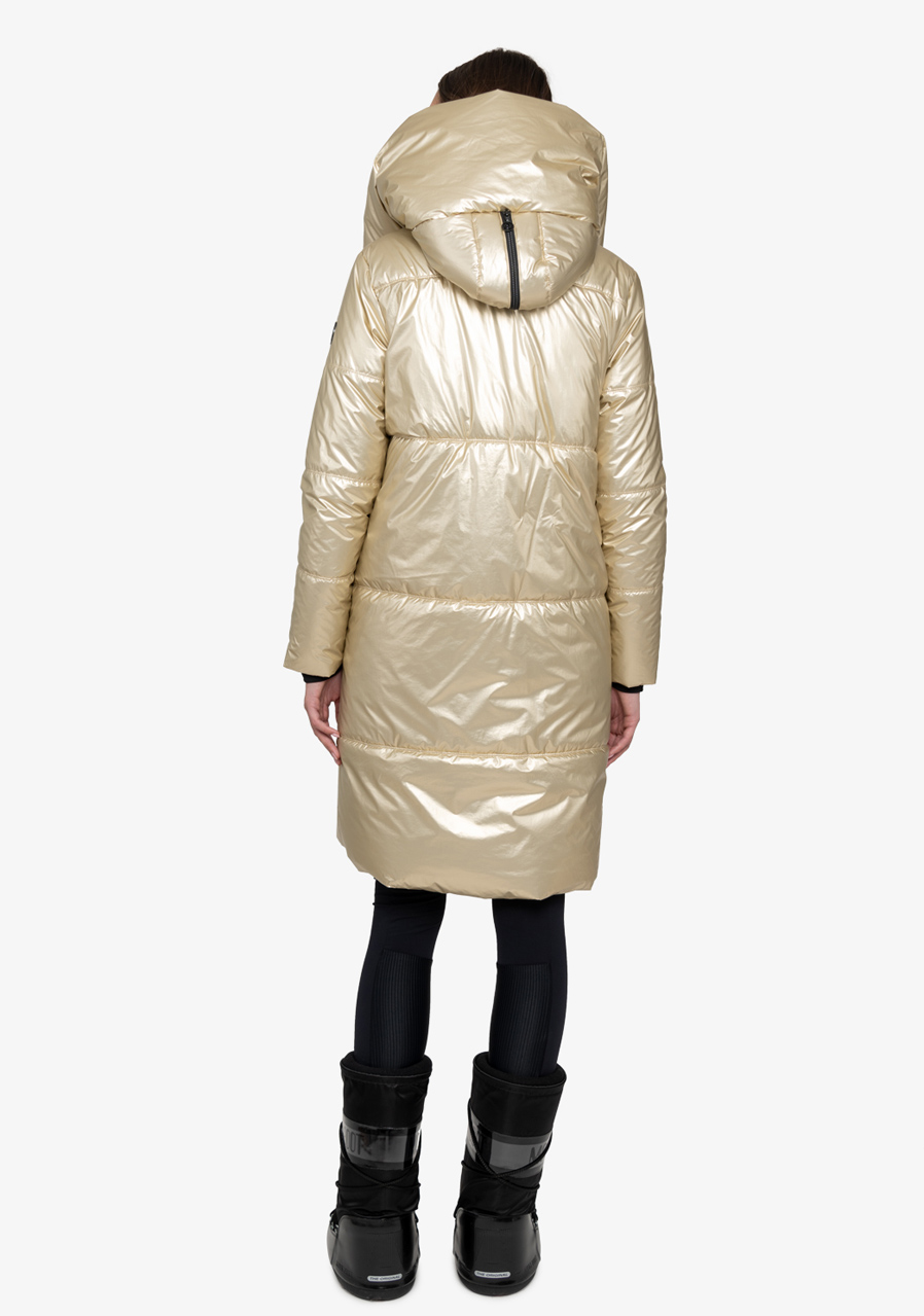 - dámský módní kabát s kapucí z kovového nylonu s dynamickým dotekem