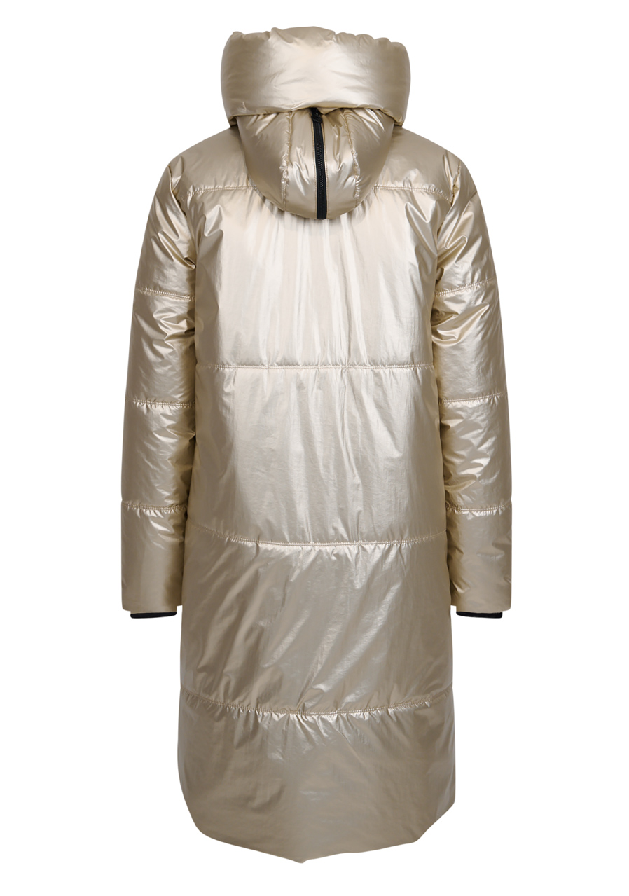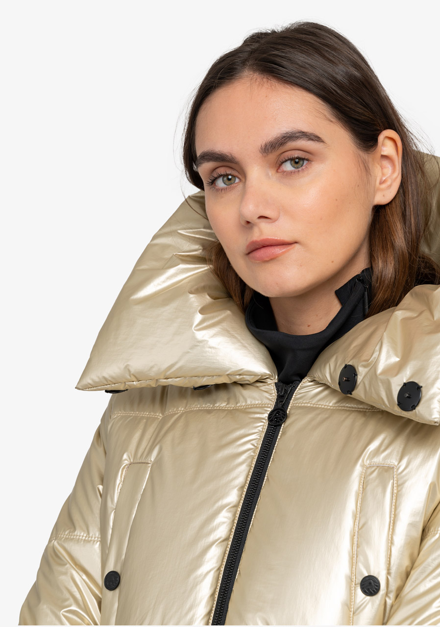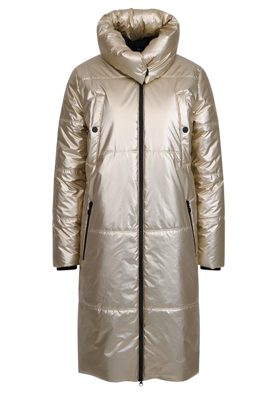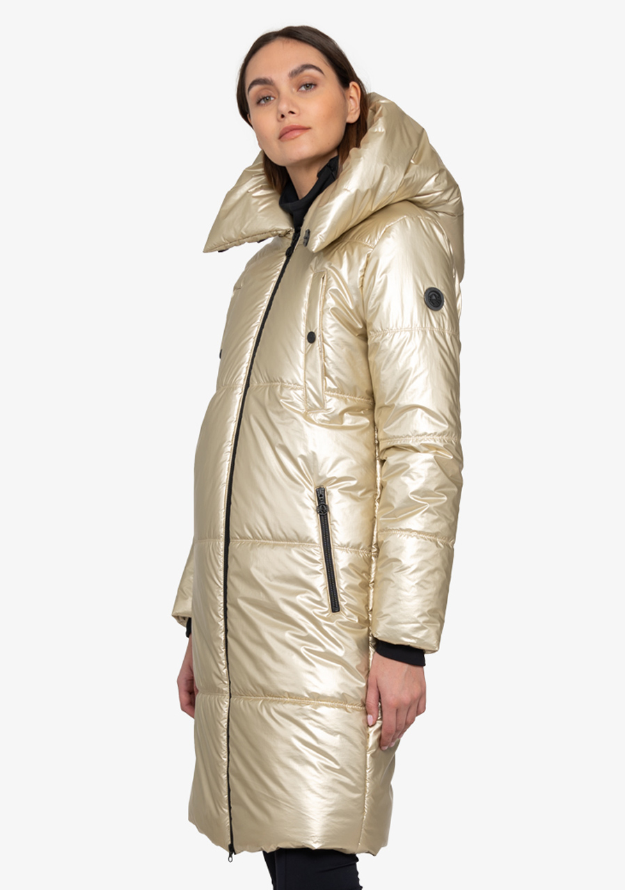 - dámský módní kabát s kapucí z kovového nylonu s dynamickým dotekem