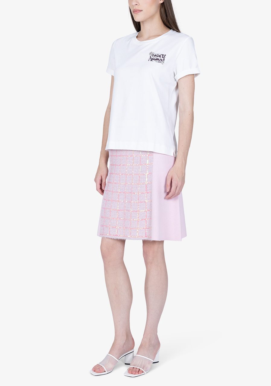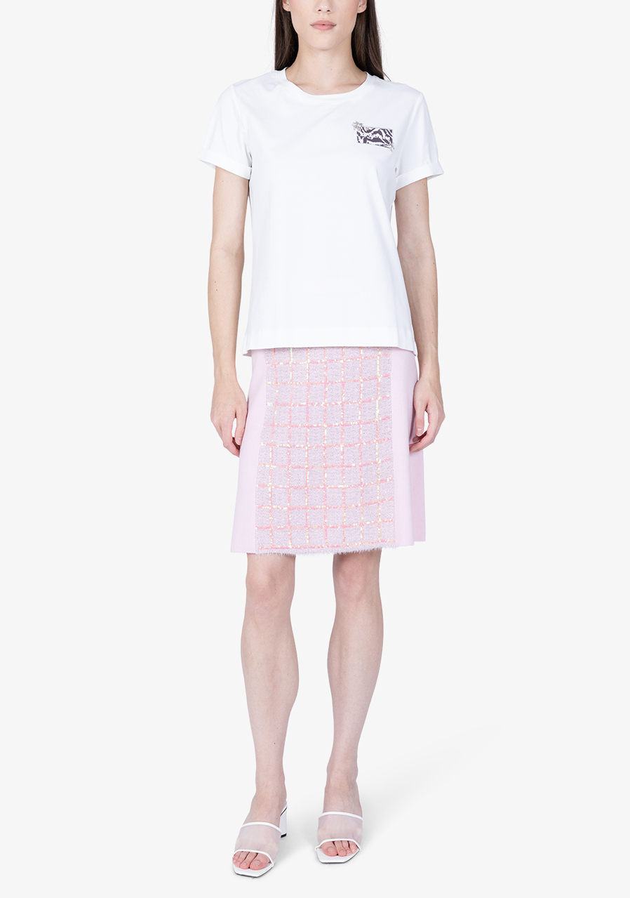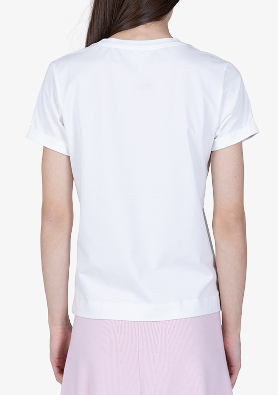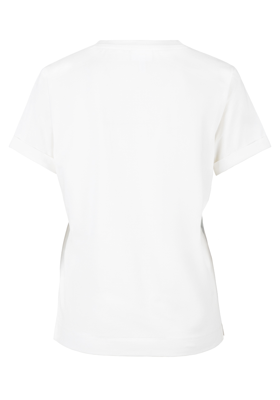 Ležérne tričko, ktoré sa ľahko stane základom každodenného šatníka. Príjemný bavlnený single jersey s elastanom ponúka komfort pri nosení, zatiaľ čo ľahko priliehavý strih pôsobí ženským a moderným dojmom. Hlavnou dominantou je prepracovaný saténový badge na prednej strane s 3D silikónovou potlačou a dekoratívnymi kamienkami, ktorý dodáva tričku výrazný módny akcent. Skvele sa kombinuje s džínsami aj športovo ladenými outfitmi.