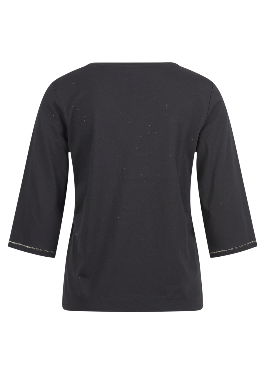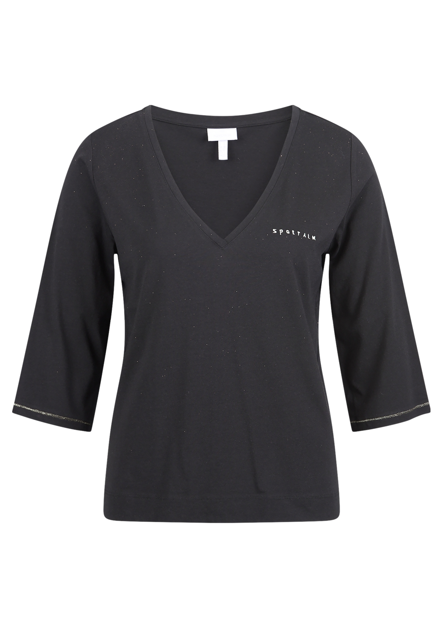 Toto elegantné dámske tričko Sportalm vyniká sofistikovaným dizajnom a nadčasovou čiernou farbou. Jemný lesk v materiáli dodáva outfitu decentný luxus, zatiaľ čo moderný strih s okrúhlym výstrihom a mierne spadnutými ramenami vytvára lichotivú siluetu. Krátke rukávy a voľnejší strih prinášajú dokonalú rovnováhu medzi eleganciou a pohodlím.