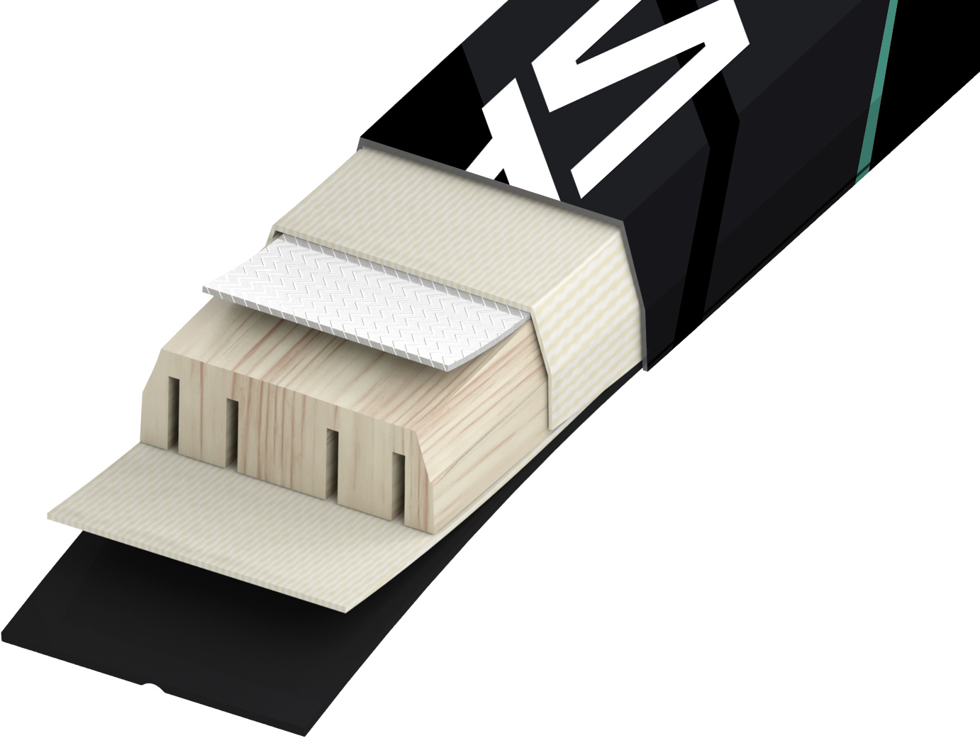 Jádro: ultralehké dřevěné jádro s kanálky (air channel) – nízká hmotnost a odolnost