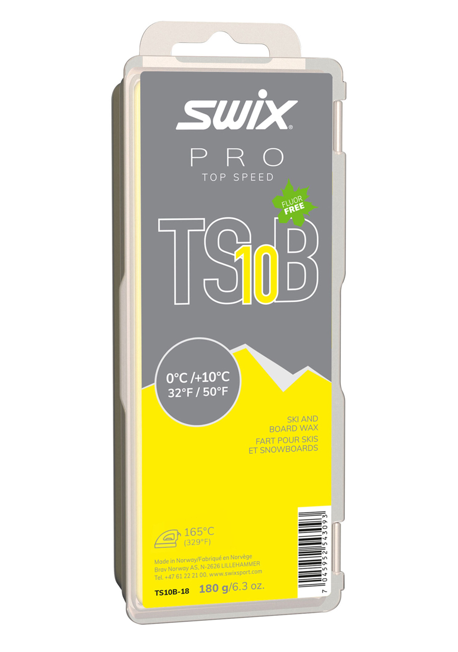 Parametre: Model : TS10B-18 (Top Speed Black Yellow) Teplotný rozsah snehu : 0 °C až +10 °C Typ snehu : mokrý, znečistený, jarný Hmotnosť : 180 g Odporúčaná teplota žehličky : 120 °C Použitie : závodný sklzný vosk pre bežky, zjazdové lyže aj snowboardy