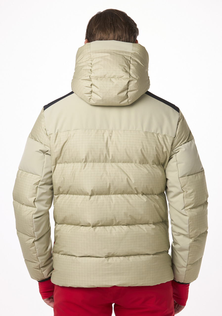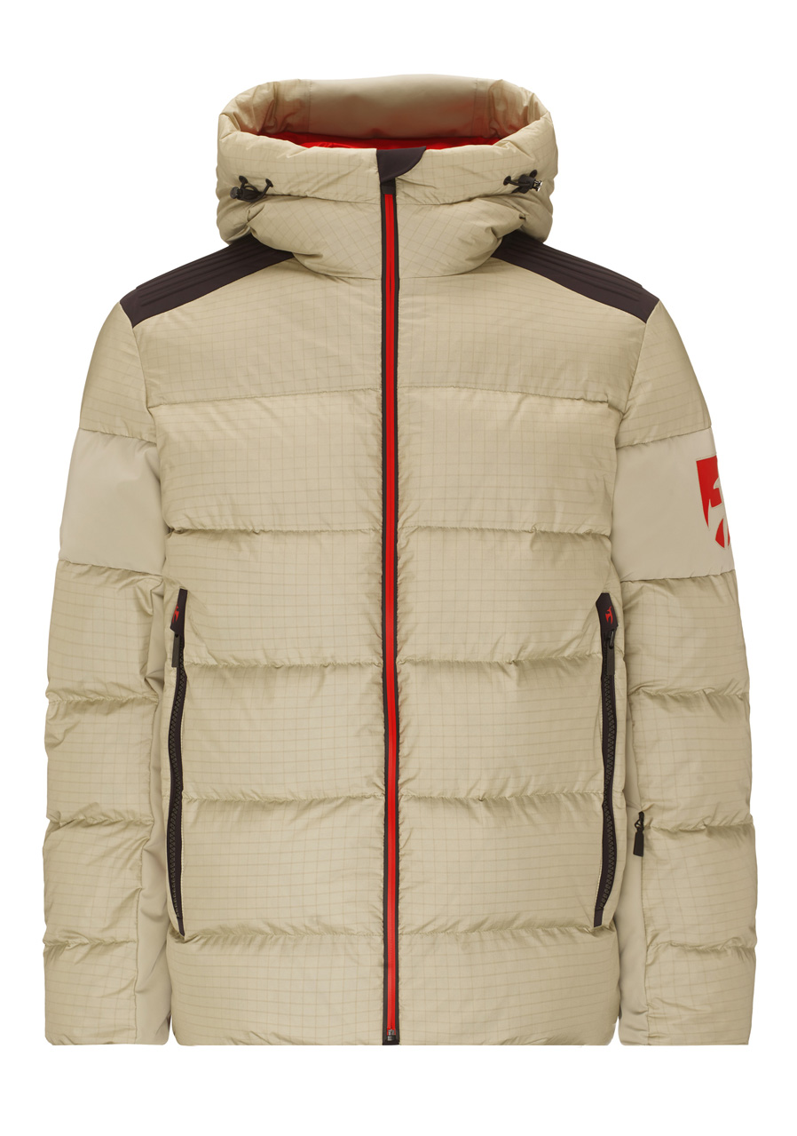 Pánska bunda Regular Fit kombinuje odolný Big Ripstop materiál a pružný Premium 4-way Stretch s PU lamináciou na dokonalú ochranu proti vetru a vlhkosti. Prémiová izolácia s Down Fillpower 750 cuin (90% prachové perie, 10% perie) a TS Insulation 120 g poskytuje optimálne teplo pri zachovaní ľahkosti bundy. Vodeodolnosť 20 000 mm a priedušnosť 20 000 g/m²/24 h zaistí komfort aj pri extrémnom počasí. Praktické vrecká, elastické manžety s otvormi na palce, nastaviteľné kapucne, snehová manžeta s protišmykovou gumou a vodeodolný zips zaisťujú maximálnu funkčnosť. Súčasťou sú laserom rezané logo a utierka na okuliare.