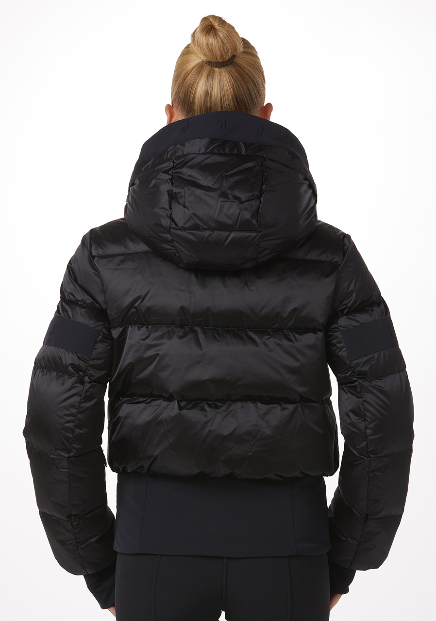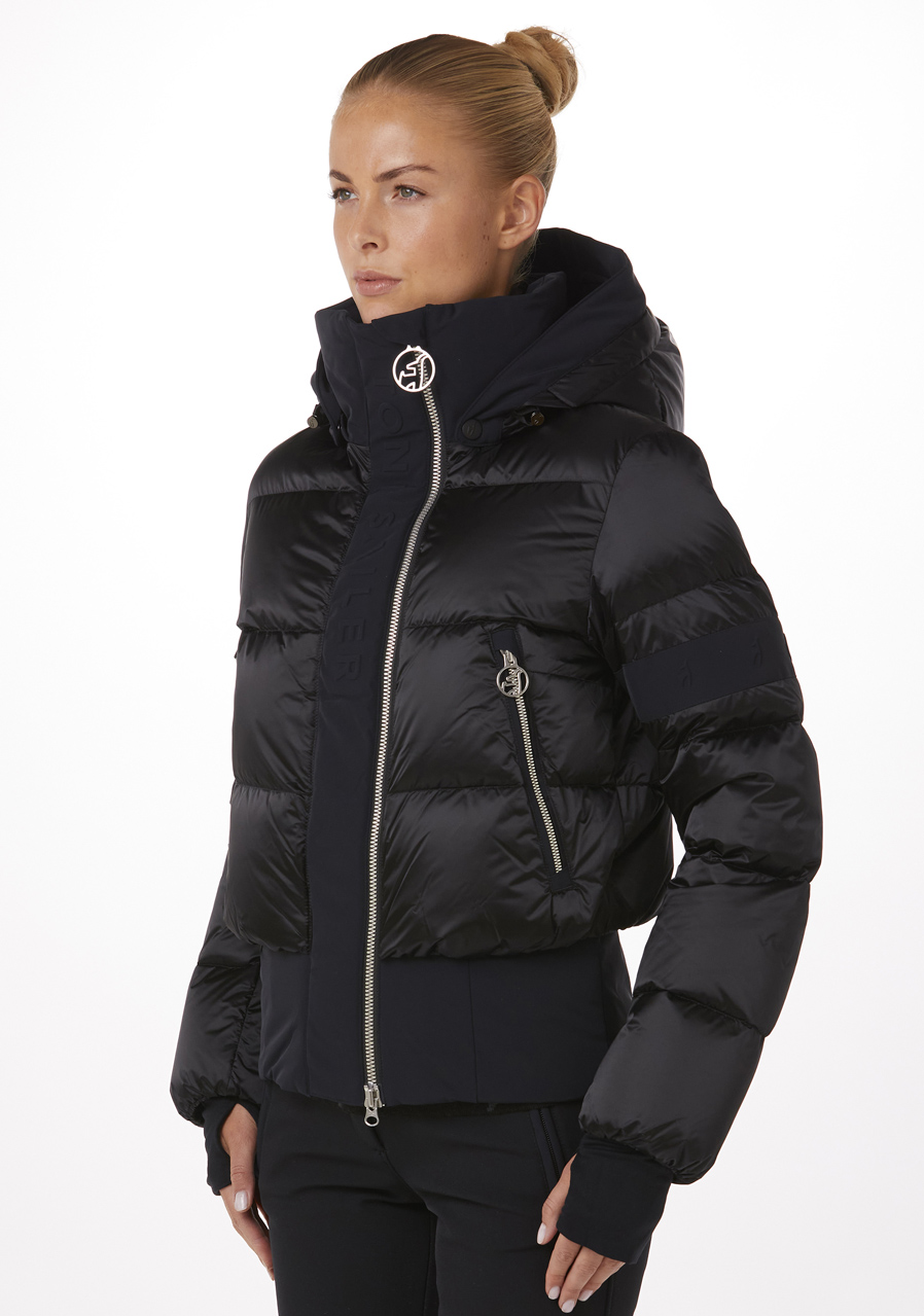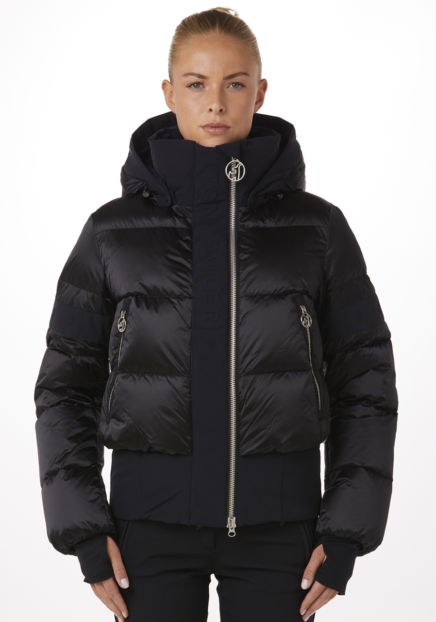 Dámská lyžařská bunda Toni Sailer v černé barvě je skvělou volbou pro stylové a náročné lyžařky. Díky regular fit střihu a použití prémiových materiálů poskytuje nejen luxusní vzhled, ale i maximální komfort a ochranu v náročných podmínkách. Vnější materiál Lesklá perla a 4-way stretch zajišťují flexibilitu a neomezený pohyb, zatímco izolace s Down Fillpower 750 cuin (90 % peří, 10 % prachové peří) a zateplení TS zajistí výbornou tepelnou izolaci.