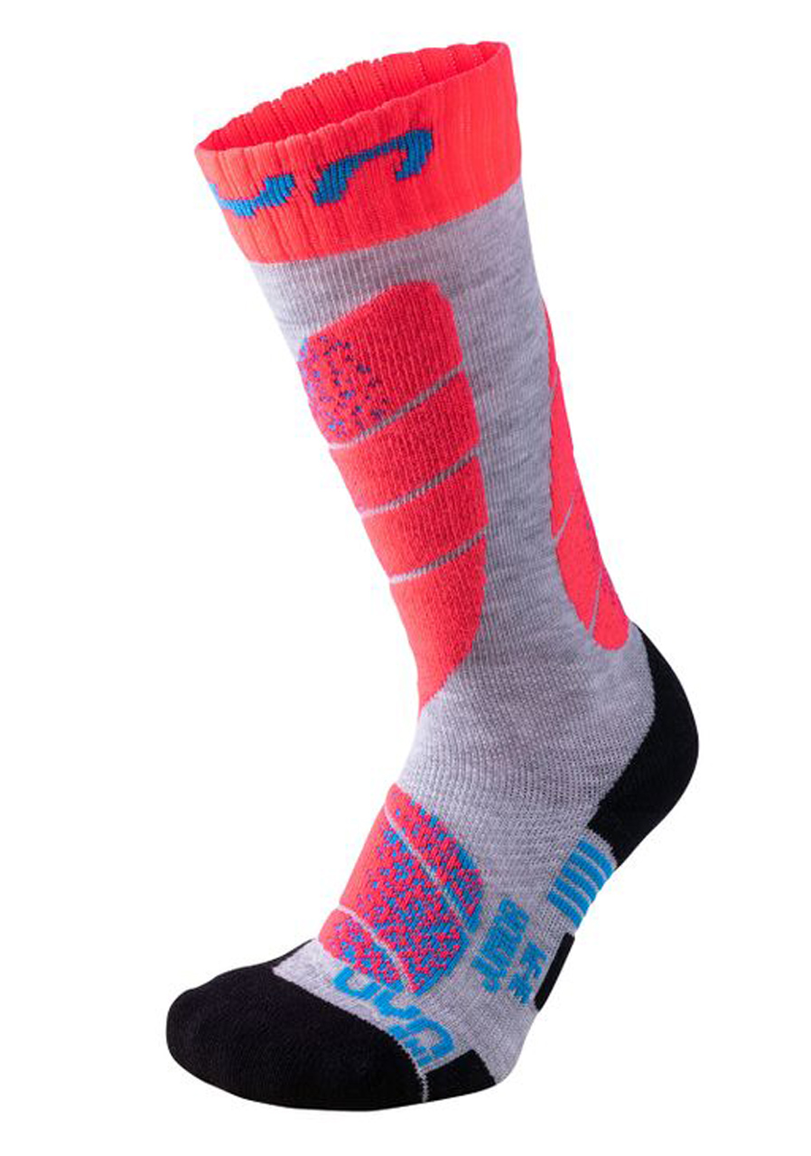 Popis:Detské podkolienky UYN Ski Junior – Light Grey/Coral Fluo – Pohodlie, teplo a ochrana pre malých lyžiarov