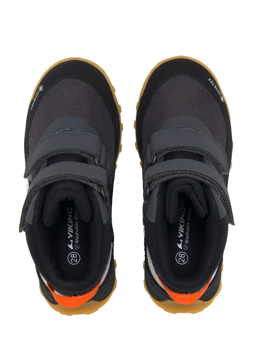 Detské zimné topánky Viking Expower Mid GTX 2V v čiernom prevedení Black spájajú odolnosť, funkčnosť a pohodlie v modernom dizajne vhodnom pre každodenné nosenie aj zimné dobrodružstvo. Kombinácia textilu a syntetiky zaisťuje ľahkosť a pevnosť, zatiaľ čo membrána GORE-TEX® poskytuje stopercentnú vodeodolnosť a priedušnosť – nohy zostávajú v teple a suchu aj v mokrom snehu. Hrejivá fleece podšívka prináša mäkké pohodlie, a vďaka dvojitému zapínaniu na suchý zips (2V) sa topánky ľahko obúvajú a dobre držia na nohe. Pevná gumová podrážka s hlbokým vzorom zaručuje stabilný krok a spoľahlivú priľnavosť aj na klzkom povrchu.