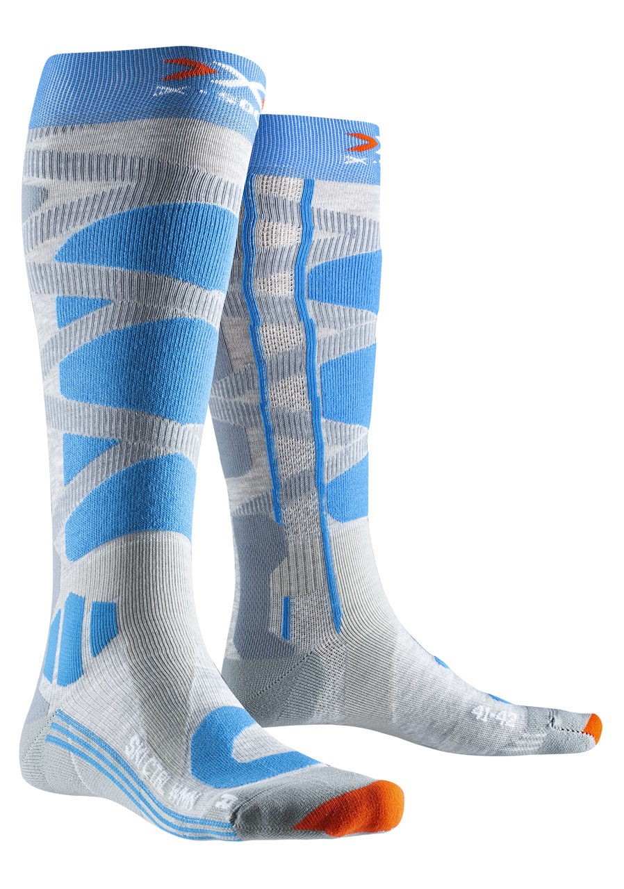 Dámske lyžiarske podkolienky X-SOCKS® Ski Control 4.0 Wmn v farebnej kombinácii Grey Melange/Turquoise sú navrhnuté špeciálne pre potreby ženskej nohy počas intenzívneho lyžovania. Vďaka pokročilým technológiám poskytujú výbornú stabilitu, efektívny odvod vlhkosti a cielenú ochranu najviac zaťažovaných častí chodidla a nôh.